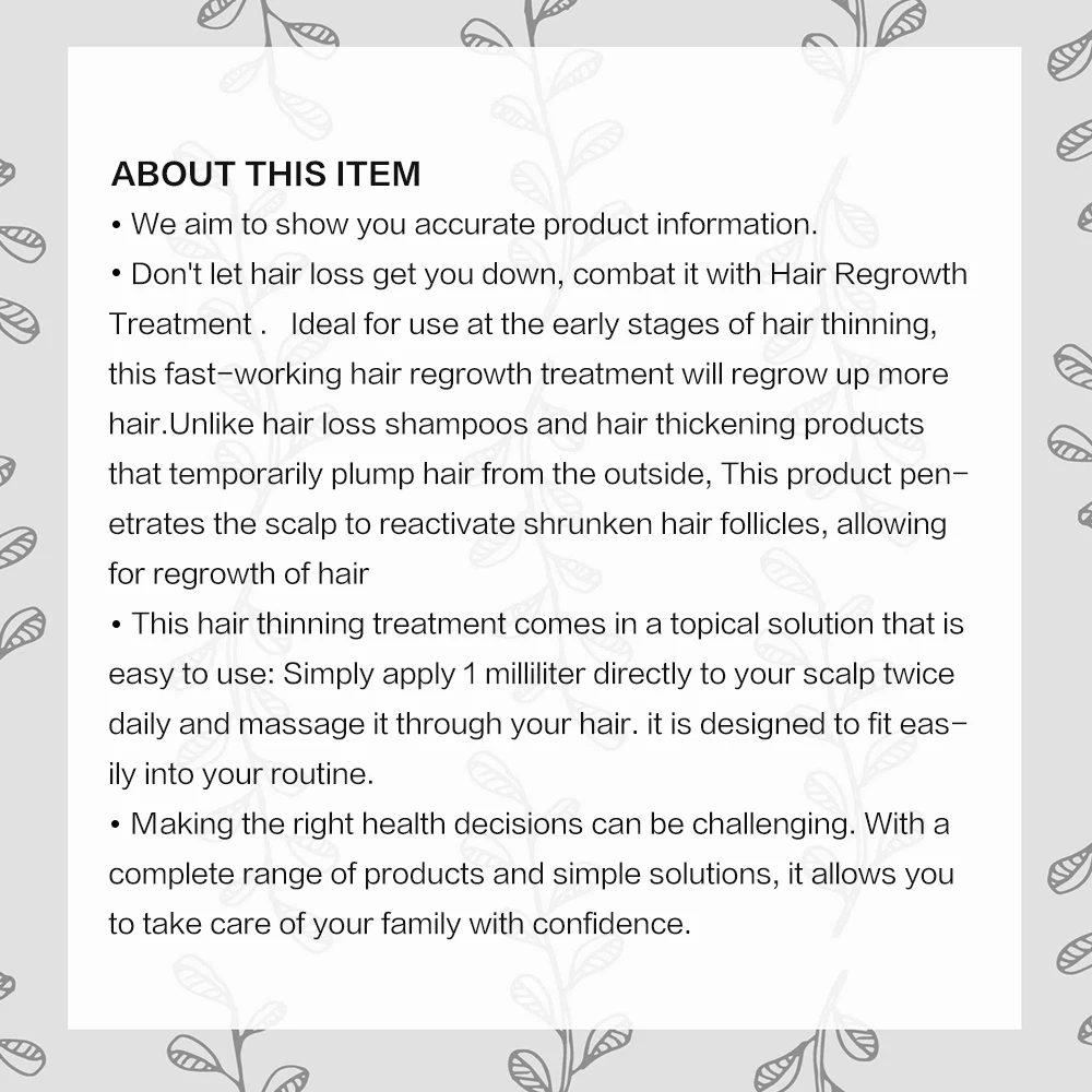Дважды в день, для достижения наилучших результатов, пожалуйста, используйте 1 миллилитр спрей около 4 -5 спрей), непосредственно используется в меньших волосах, без волос часть головы, помощь в росте волос; Увеличение количества использования или использование не может привести к лучшему использованию; Согласно инструкции, Каждая бутылка используется для не менее 25-30 дней, может эффективно уменьшить выпадение волос и выпадение волос.