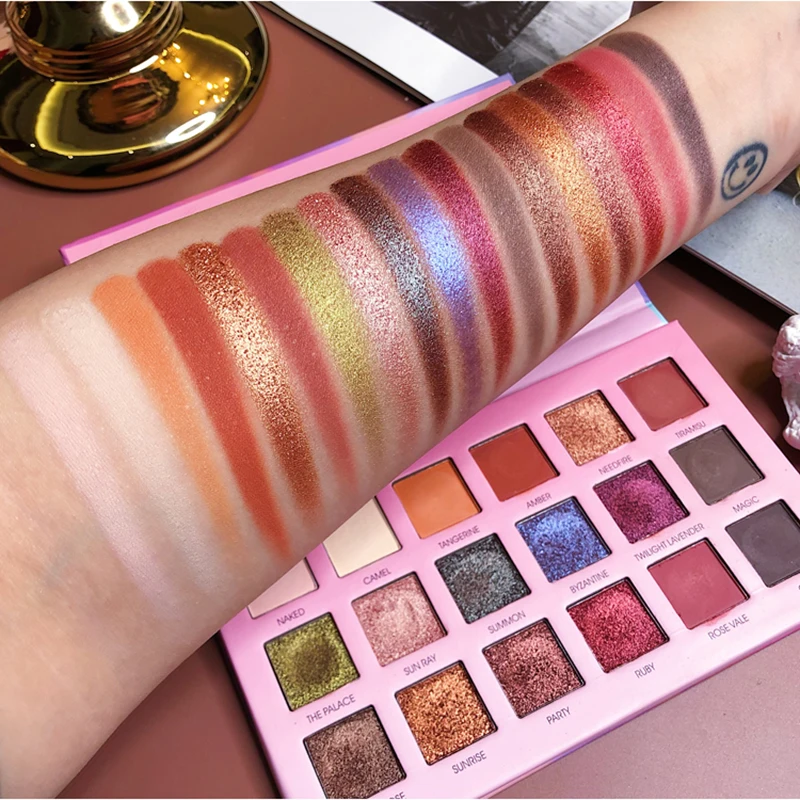 Палетка теней для век сделана из 18 цветов гладкого шиммера и матовой текстуры пудры.