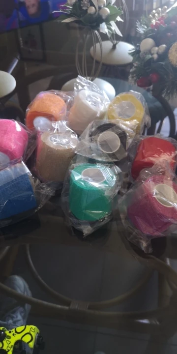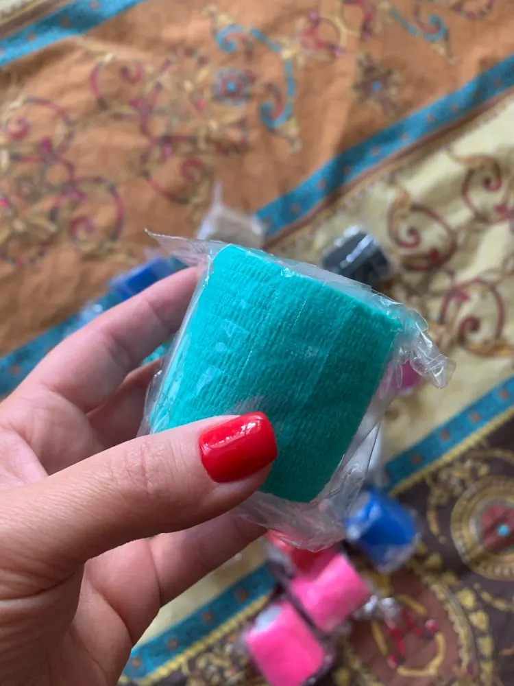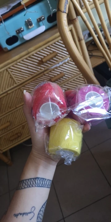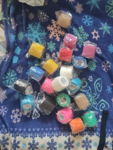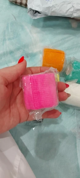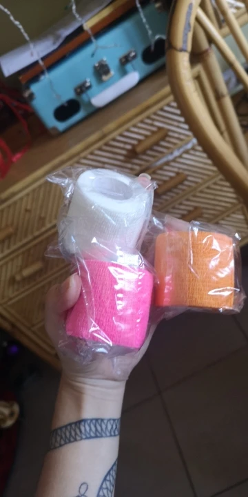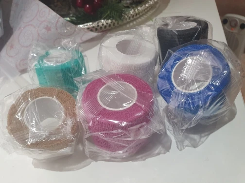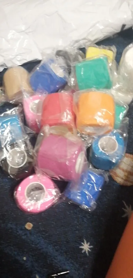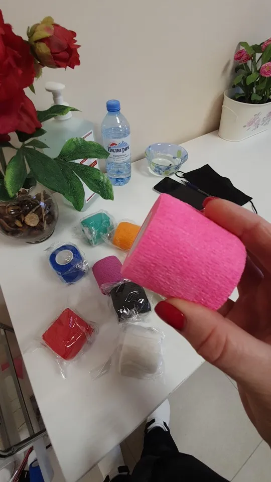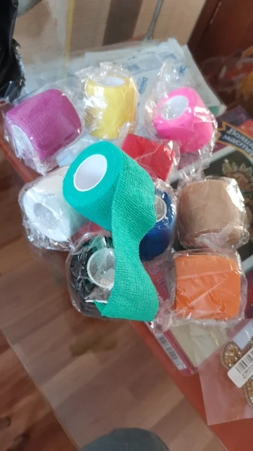 Продавец - супер, прочитал комментарий к заказу и положил те цвета, которые я попросила. Думала, будет рандом. Спасибо! Бинт липнет к самому себе и больше никуда, т.е. работает так, как должен. Не очень приятный запах, надеюсь выветрится. Доставка до Москвы - 5 дней!