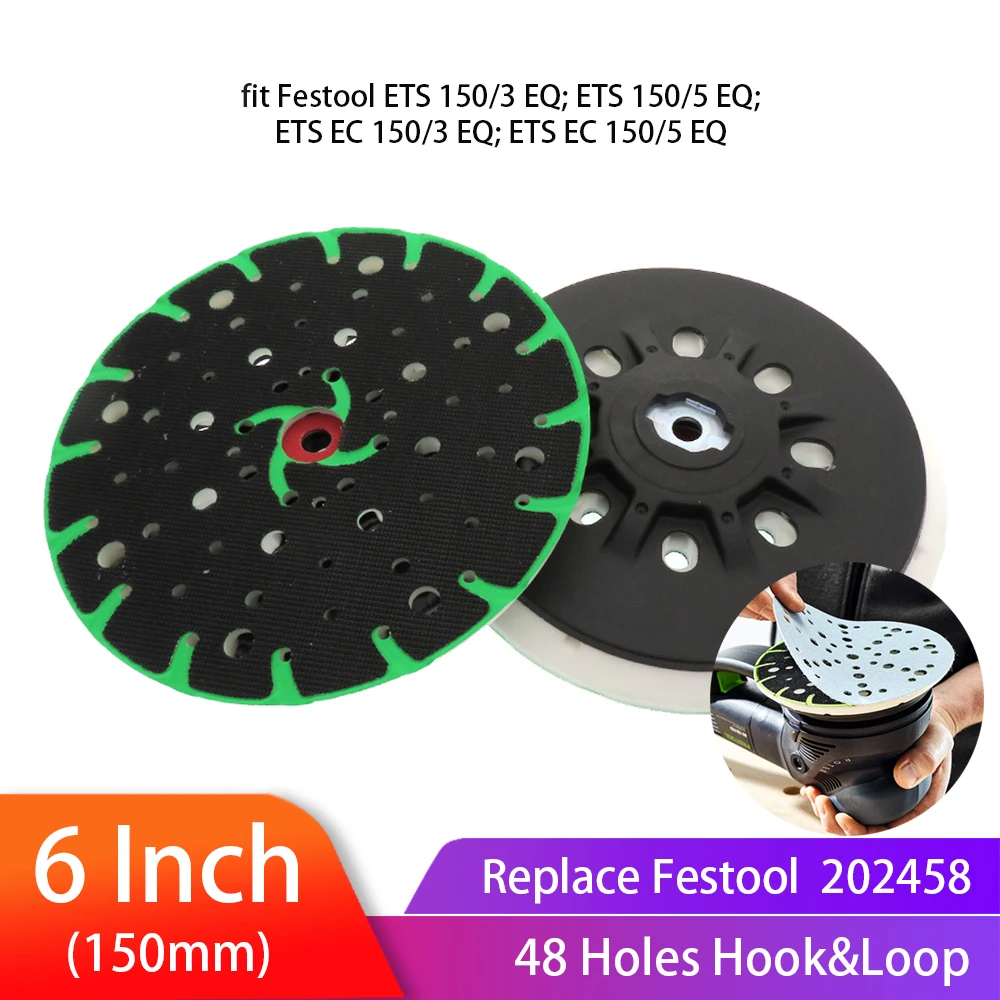 Шлифовальная подушка, 6 дюймов (150 мм), беспылевая жесткая задняя насадка с 48 отверстиями, мягкая шлифовальная подушка для 6-дюймовых шлифовальных дисков с крючками и петлями для шлифовального станка Festool