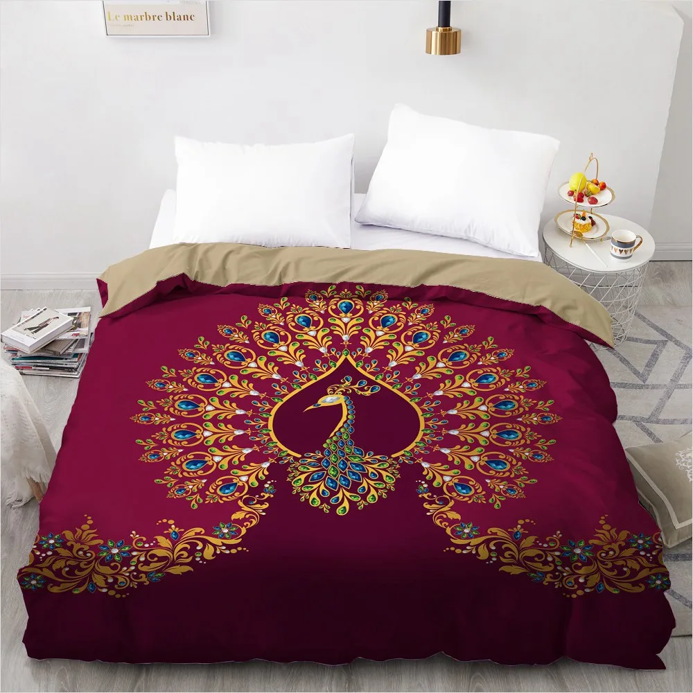 3D HD Printing Custom Duvet Cover ComforterQuiltBlanket case Twin Full Queen Bedding 140x200 200x200 Red peacock Bedclothes
