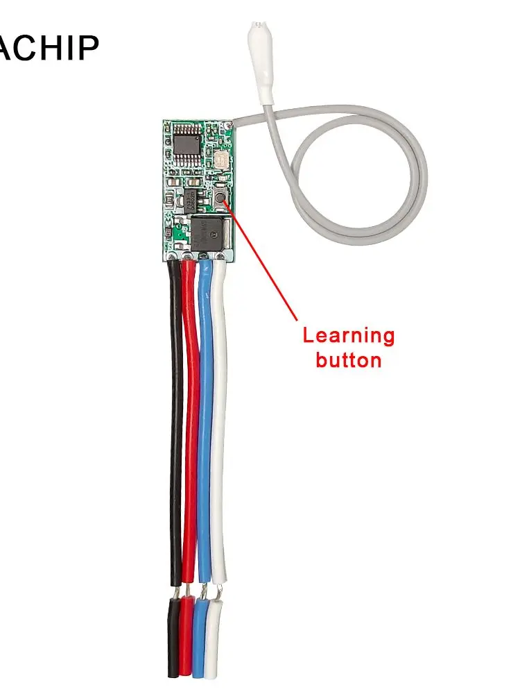Нажмите кнопку обучения на приемнике один раз, он приходит в мгновенный режим настройки.Подождите немного, светодиодный индикатор выключится, он войдет в состояние обучения.Нажмите кнопку дистанционного управления, светодиодный индикатор на плате приемника будет мигать, а затем выключается.Через 3 секунды светодиодный индикатор будет включаться снова и успешно учится.
