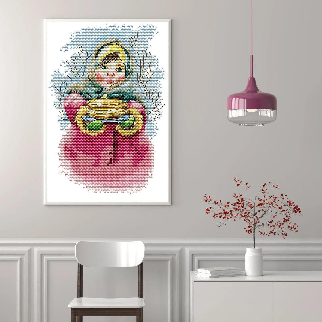 Набор для вышивки крестиком «Девушка держит еду» рукоделие вышивка ручная работа наборов нитей DMC 14ct 11ct набивная ткань для рукоделия