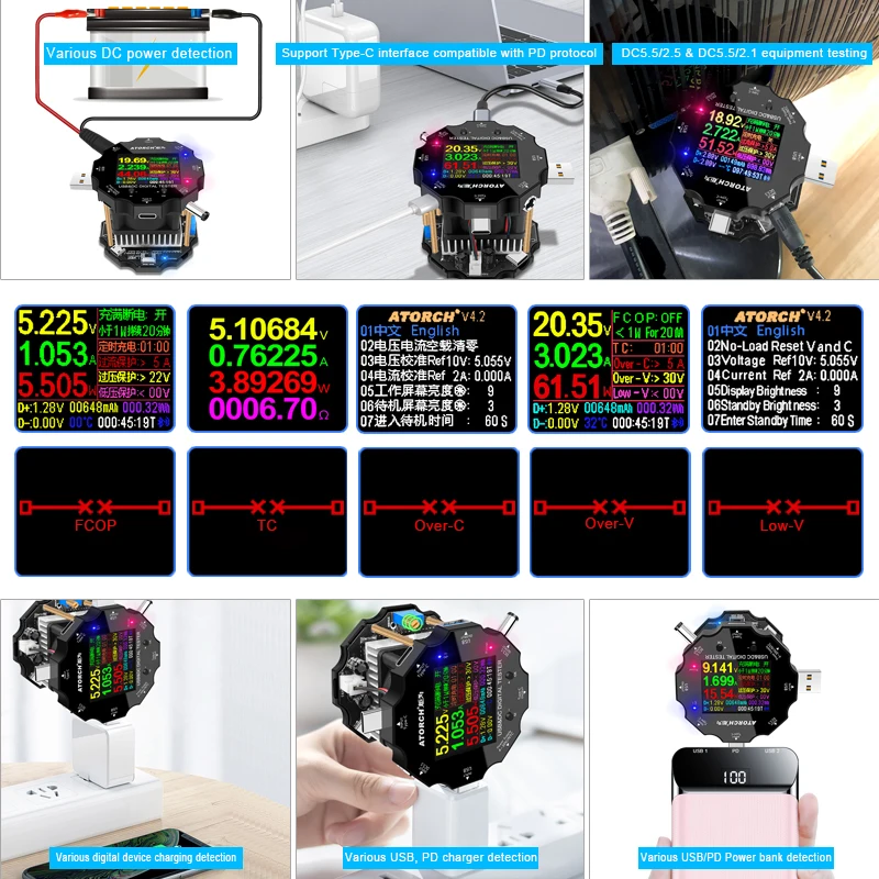 Тестер емкости аккумуляторов 18650, Электронный индикатор нагрузки, индикатор разрядного заряда, измерительный прибор usb постоянного тока QC PD, проверка источника питания, приложение