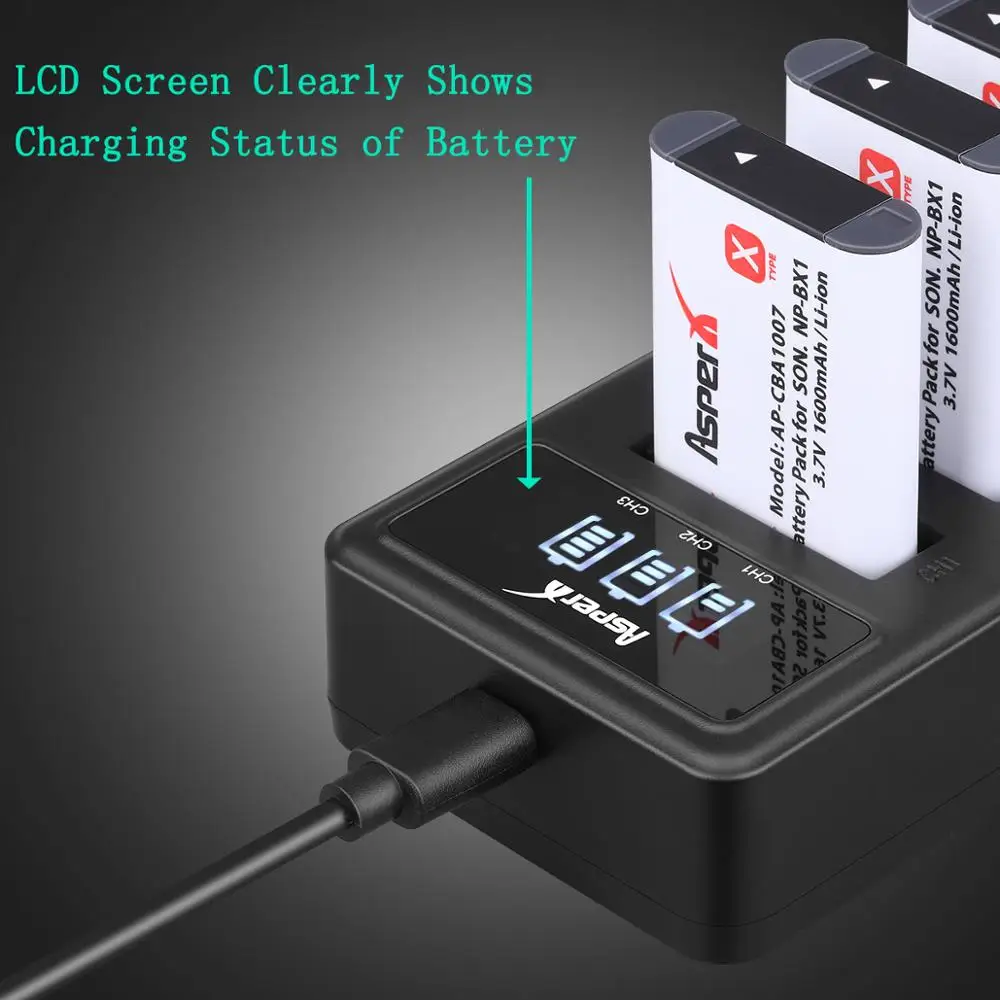 Зарядное устройство с 3 слотами USB и ЖК-дисплеем, 1600 мАч, для Sony DSC RX1 RX100 M3 M2 RX1R WX300 HX300 HX400 HX50 HX60