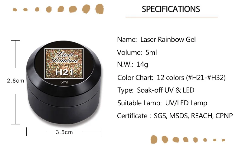 4) кисть с тонким слоем лаков гель-лазер Радужный Блеск платиновая краска Эмаль Гель лак для ногтей, отверждение 1-2 мин УФ-лампой