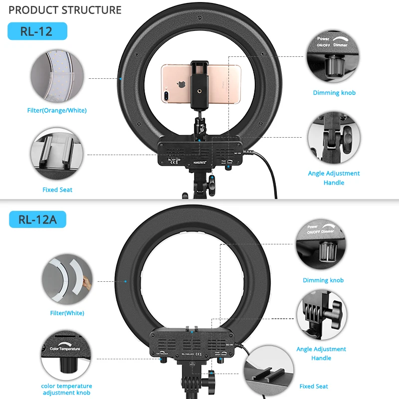 Кольцевой светодиодный светильник TRAVOR, 14 дюймов, с регулируемой яркостью, со штативом, держателем для телефона, для студийной фотосъемки, фотографирования, макияжа, YouTube