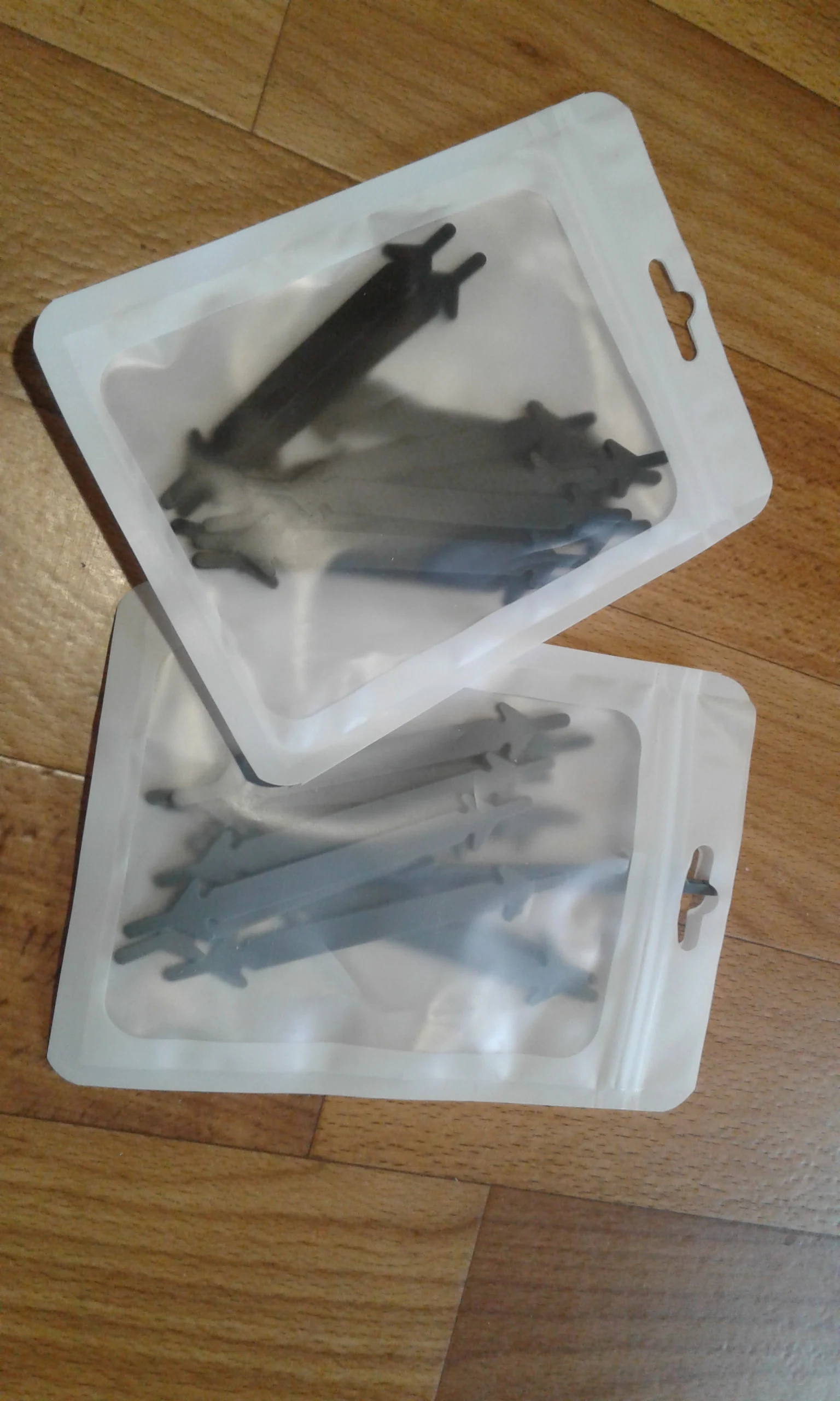 Попробовала вставить эти шнурки в детскую обувь. С трудом вставила. Думаю, это хорошо, так как не выскочат. Дочка уже пыталась их вытянуть, не удалось. Шнурки упакованы в отдельные закрывающиеся пакетики. Очень удобно использовать часть и хранить остаток.