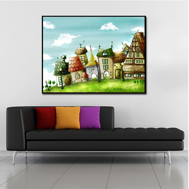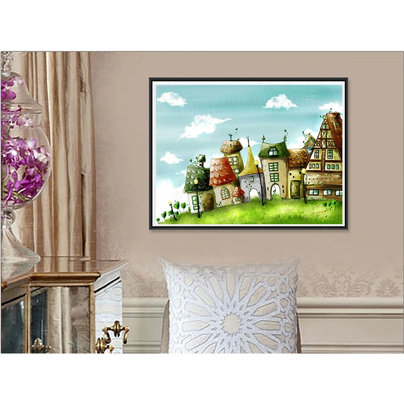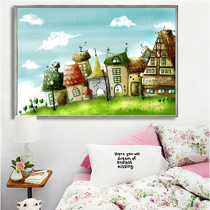 Полная дрель Алмазная картина DIY Мультяшные дома Стразы мозаика текст Алмазная вышивка стены украшение дома подарок Прямая поставка