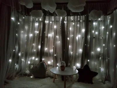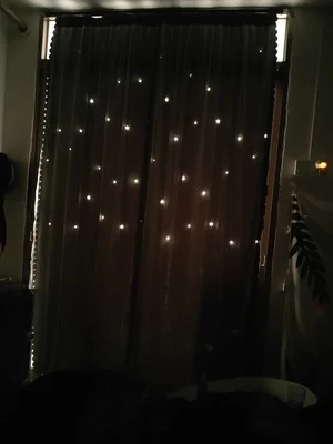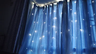 Они прекрасны в комнате моего сына. Первый слой более острый с некоторыми отверстиями звезд, чтобы между светом и второй слоем было шелком.