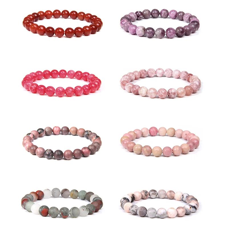 Браслеты из натуральных чакр для женщин, полированный камень, бусины 8 мм, искусственный Родохрозит, эластичный браслет для дружбы