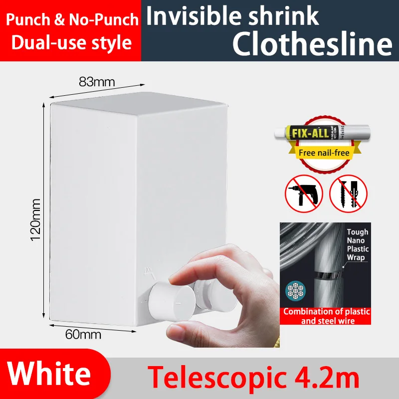 Описание: Балкон бельевая веревка отель настенный из нержавеющей стали бельевая веревка невидимая телескопическая Название: Новая невидимая бельевая веревка Материал: АБС-пластик + Толстая стальная проволока Размер: 11*7*6 Вес: 500 г Примечание: метод установки без перфорации не подходит для штукатурных стен, подходит для плиточных стен. Характеристики: Корпус из АБС-пластика, внутренняя конструкция из космоса и алюминия, прочный трос. Простота использования-просто удлините кабель и Повесьте его на противоположный настенный замок, чтобы получить достаточно места для стирки Бельевая веревка выдерживает вес около 20 кг, а бельевая веревка выдерживает более высокие весы в зависимости от ситуации. Регулируемая Веревка: веревка для белья имеет выдвижную веревку длиной 4,2 м. Вы можете свободно выбрать расстояние подвешивания в зависимости от количества одежды. Защита от ржавчины: Бесплатная телескопическая сушилка из троса. Износостойкий/без ржавчины/без стальной проволоки. Два способа установки: 1. Способ установки пробойника [прочный, без требований к стенам] 2. Тип без перфорации-оснащен методом установки клея без гвоздей [прочный, не повреждает стену/установку]. Без перфорации-это новый способ установки, который прост и удобен в установке, не оставляет следов и красивый внешний вид, не повреждает поверхность стены, водонепроницаемый и прочный, И обладает высокой несущей способностью. После нанесения клея на стену в течение 3-5 дней клей без гвоздей полностью высохнет, а затем используется. Водонепроницаемый, влагостойкий и термостойкий. Посылка Бельевая веревка * 1, винт * 2, клей * 1 Примечания: 1. Измерения предмета, лежащего на столе, могут немного отличаться. 2. Реальный цвет изделия может немного отличаться от изображения на сайте из-за многих факторов, таких как яркость вашего монитора и ярсветильник при фотосъемке. Спасибо за понимание!