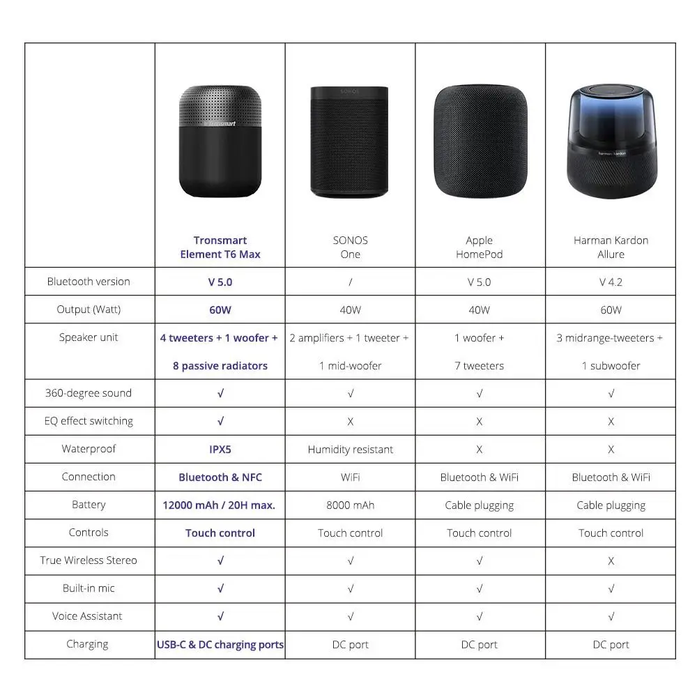 Tronsmart T6 Max Bluetooth динамик TWS беспроводной IPX5 NFC 360 стерео звук 60 Вт глубокий бас домашняя колонка с голосовым ассистентом