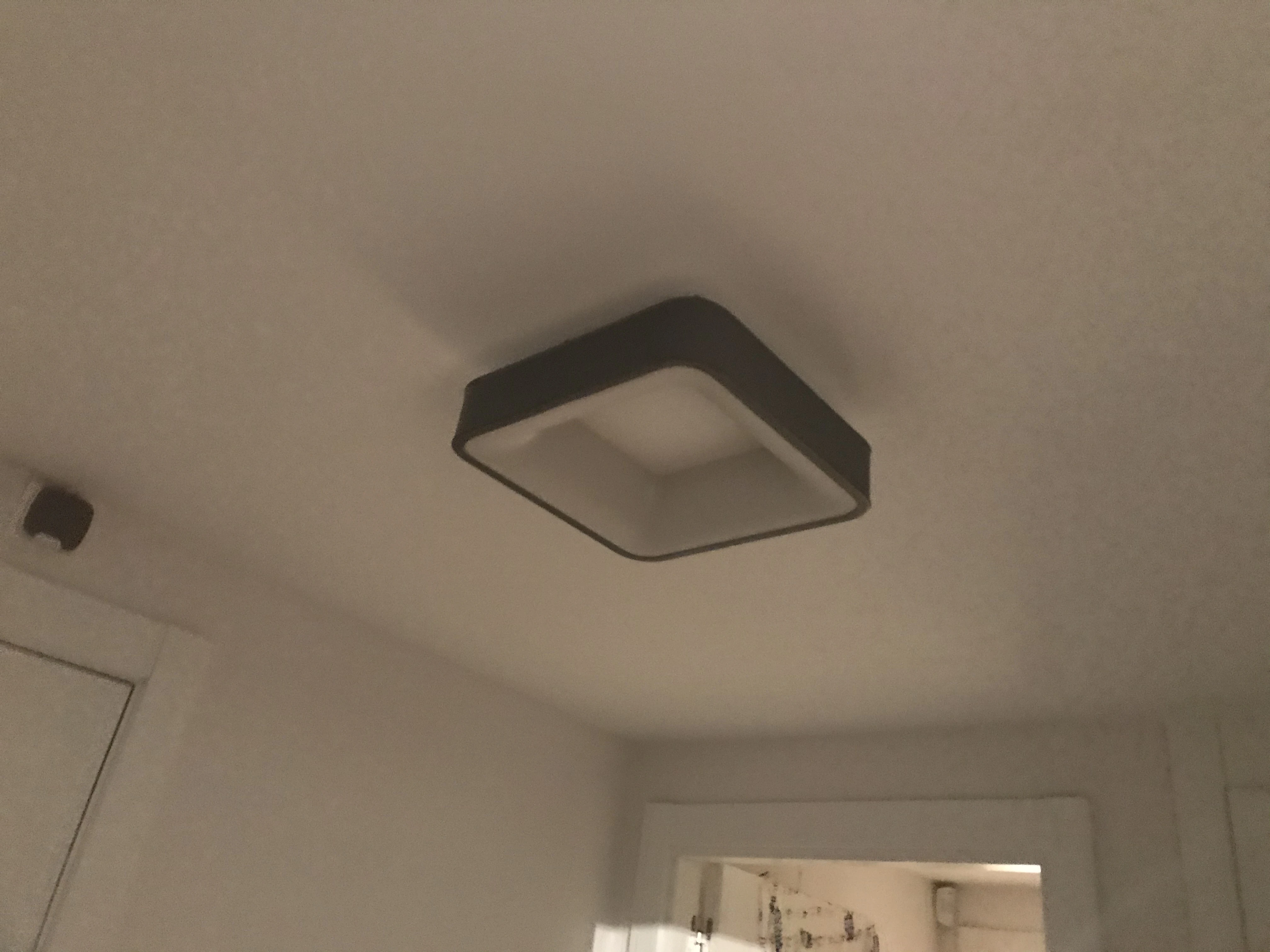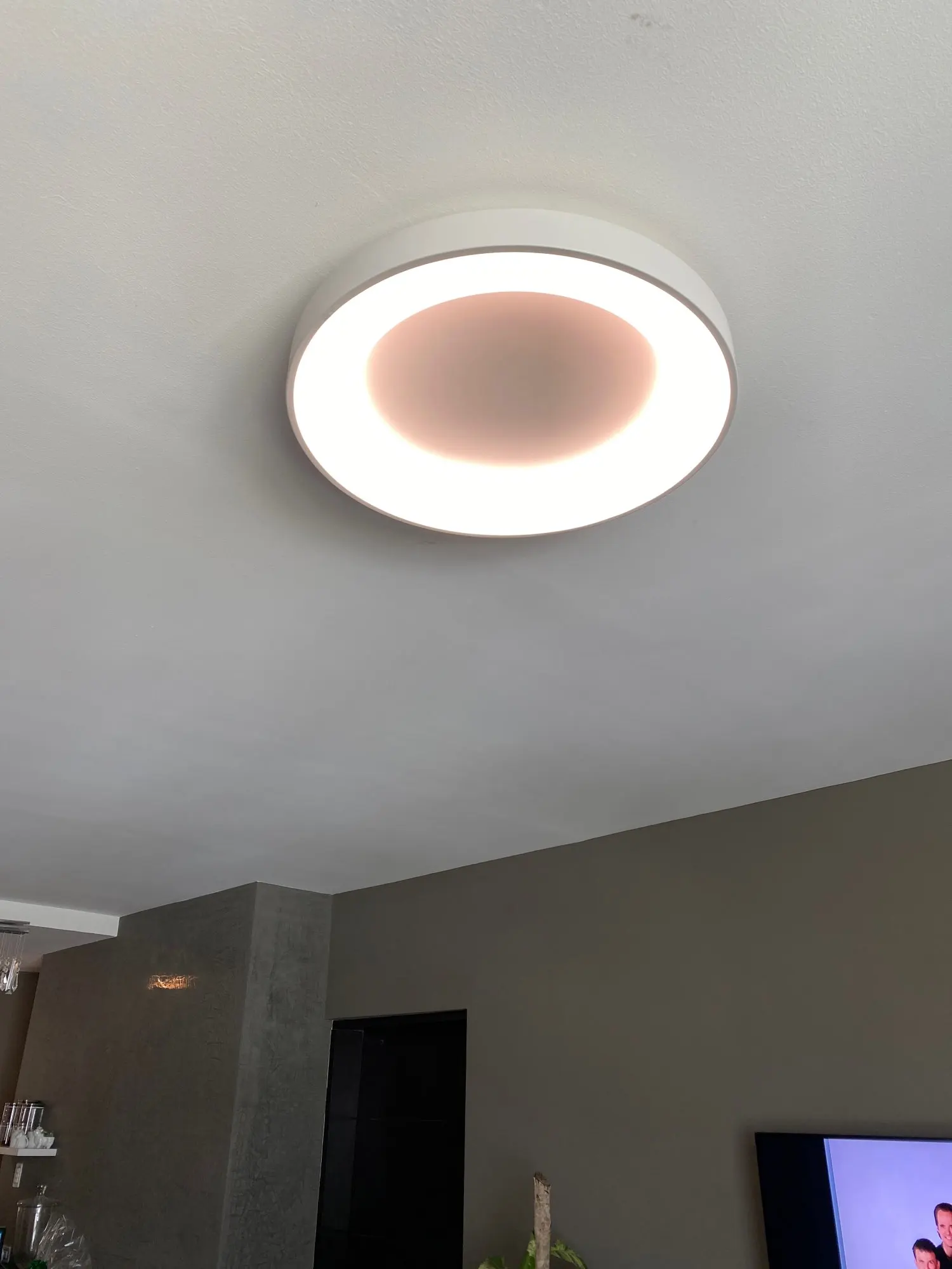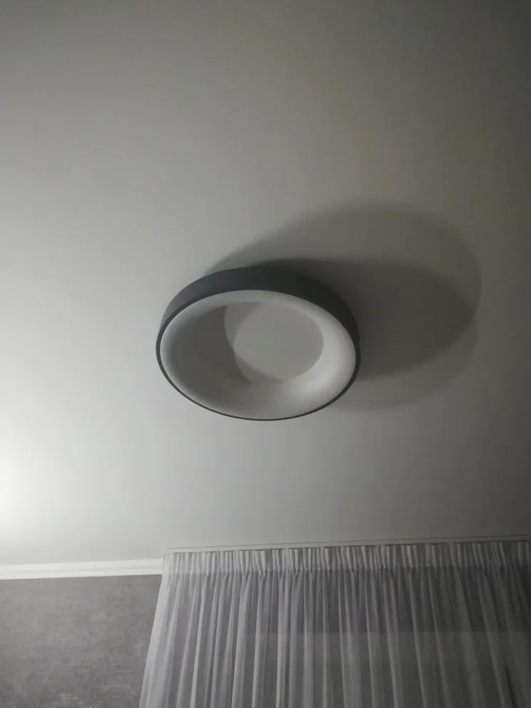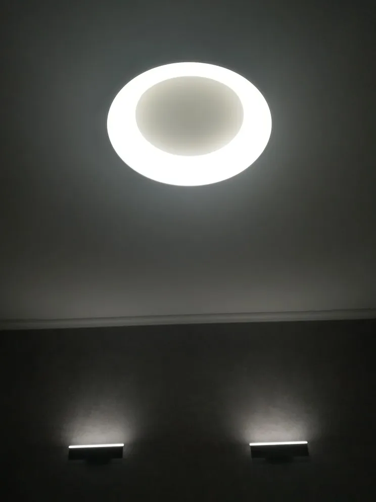 Идеальная упаковка, качество и количество света идеально подходят для приемника 6m2, так как он прилипает издалека, вы можете увидеть металлическую опору, которая идет к потолку, и проход проводки к лампе прозрачен и отражает на потолке точка света, это решается покрытием черной лентой