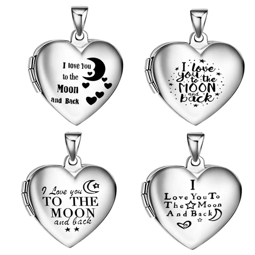 Кулон из нержавеющей стали, с изображением сердца, с гравировкой Я люблю тебя до Луны, кулоны для фотографии