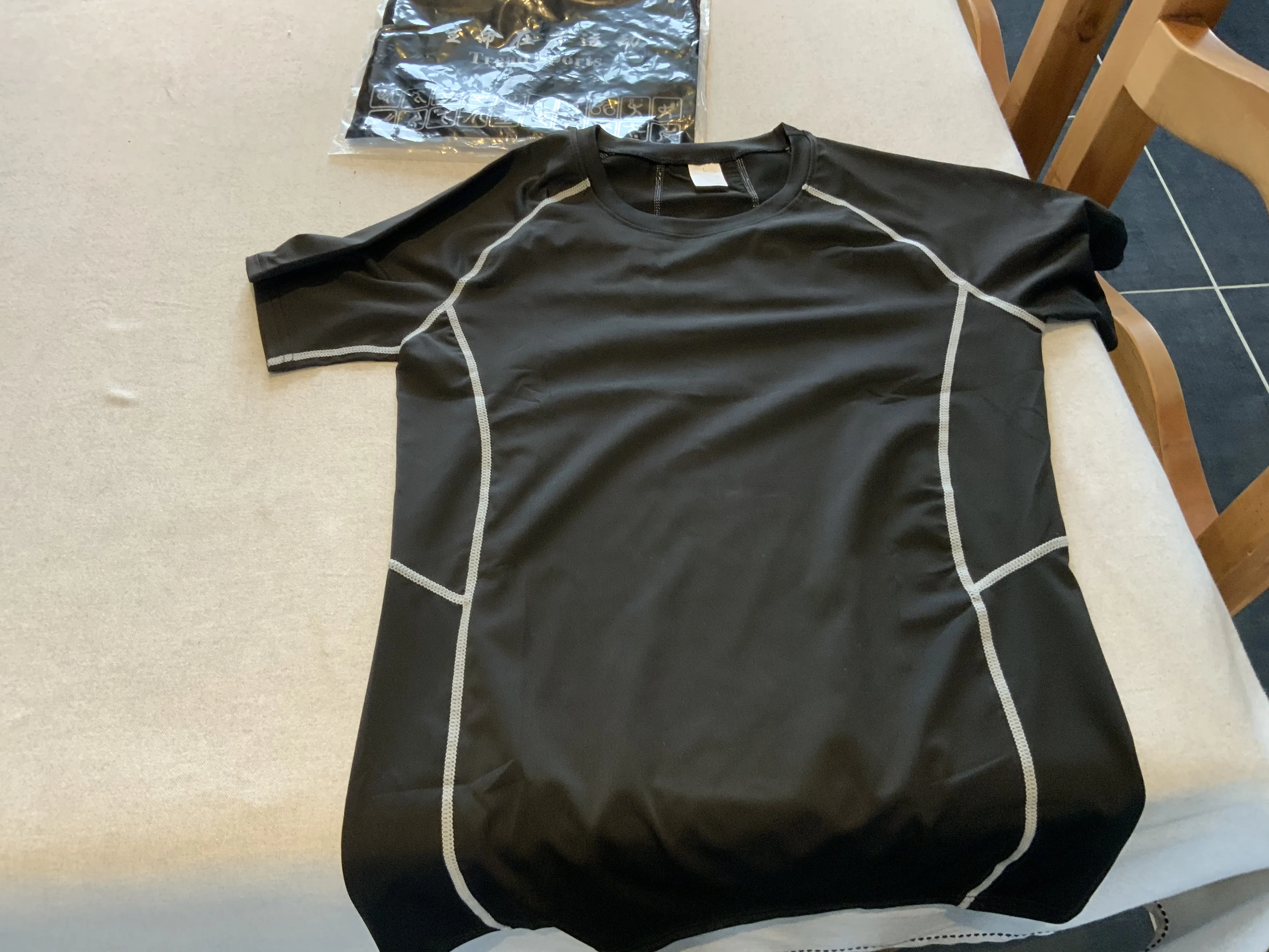 Быстрая доставка, футболка качество отличное, сшита аккуратно, материал тянется, облегает фигуру. Рекомендую продавца и товар.