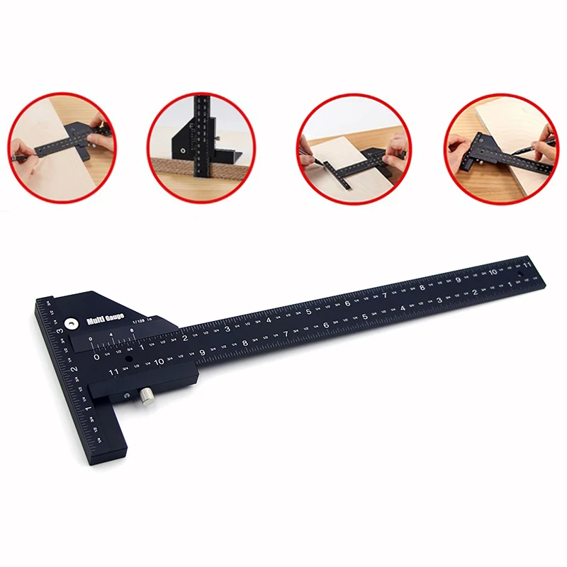210mm Multi Sliding Depth Gauge Aluminum Alloy T Square Ruler Woodw...