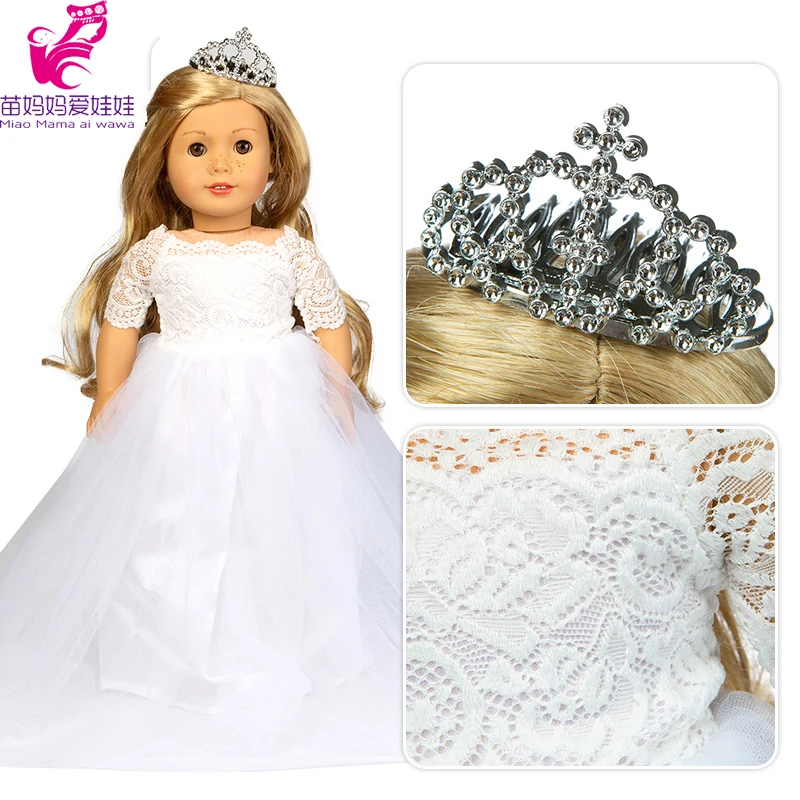 18-дюймовая кукла, белое, розовое, синее свадебное платье с короной, кружевное платье для куклы 43 см
