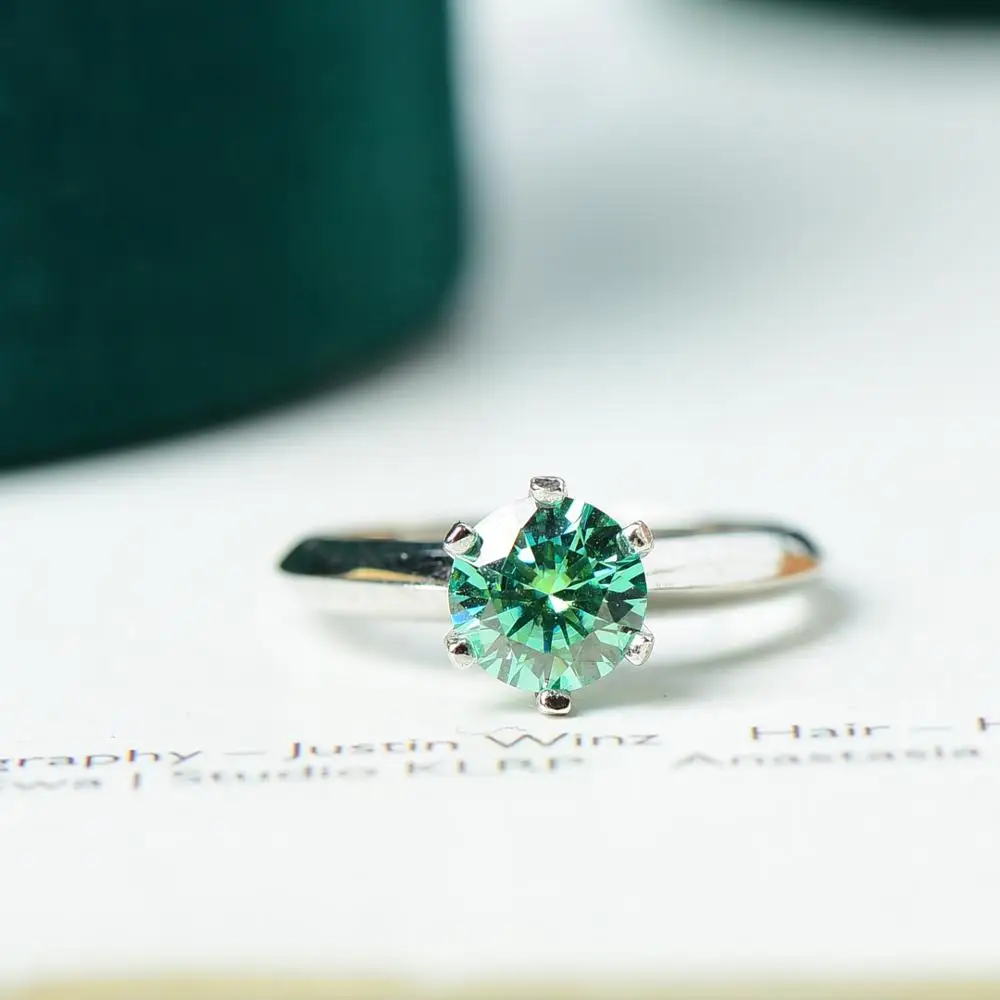 Классическое Обручальное кольцо для девочек-подростков из серебра 925 пробы с круглым зеленым муассанитом D-образного цвета с бриллиантом, обручальное кольцо с изумрудом