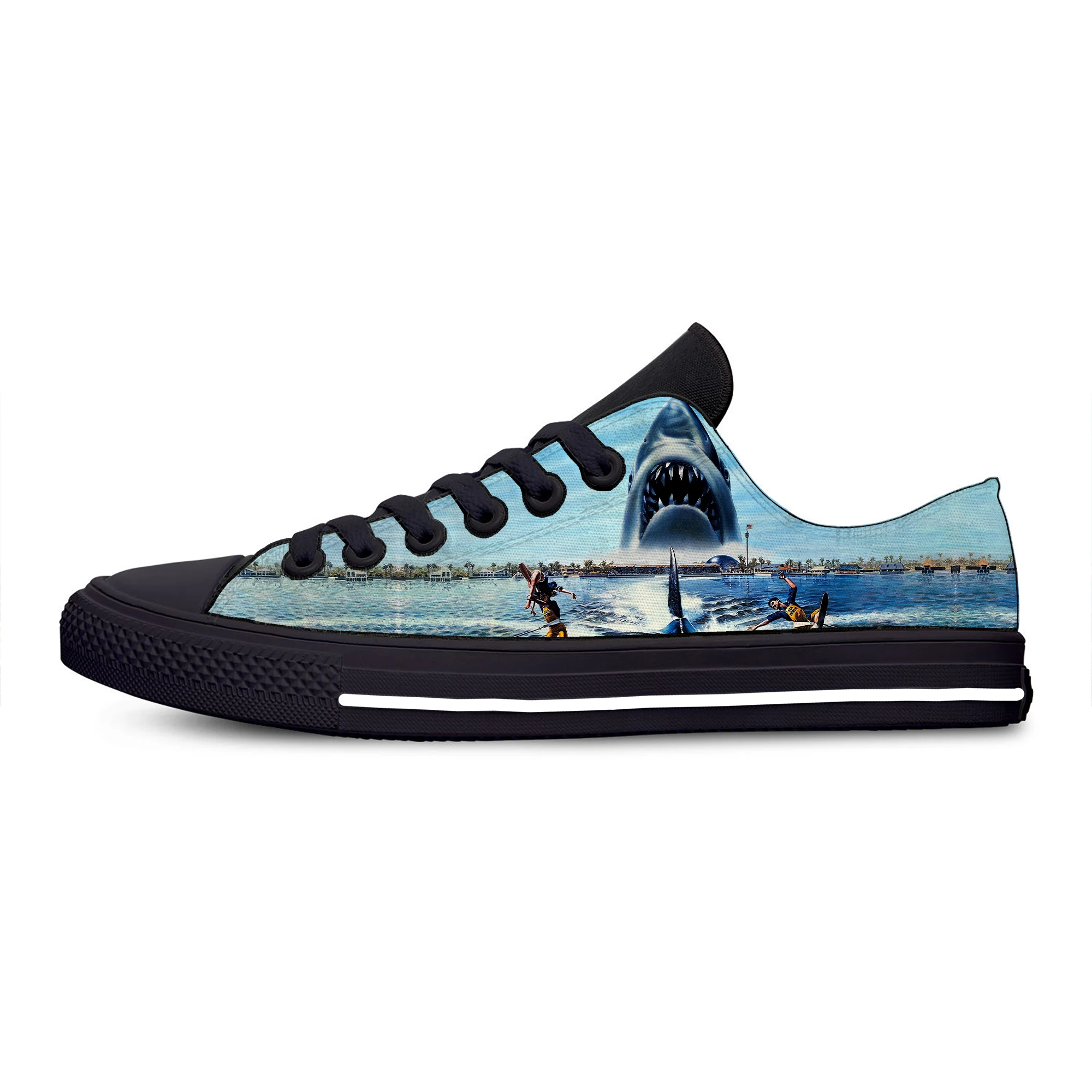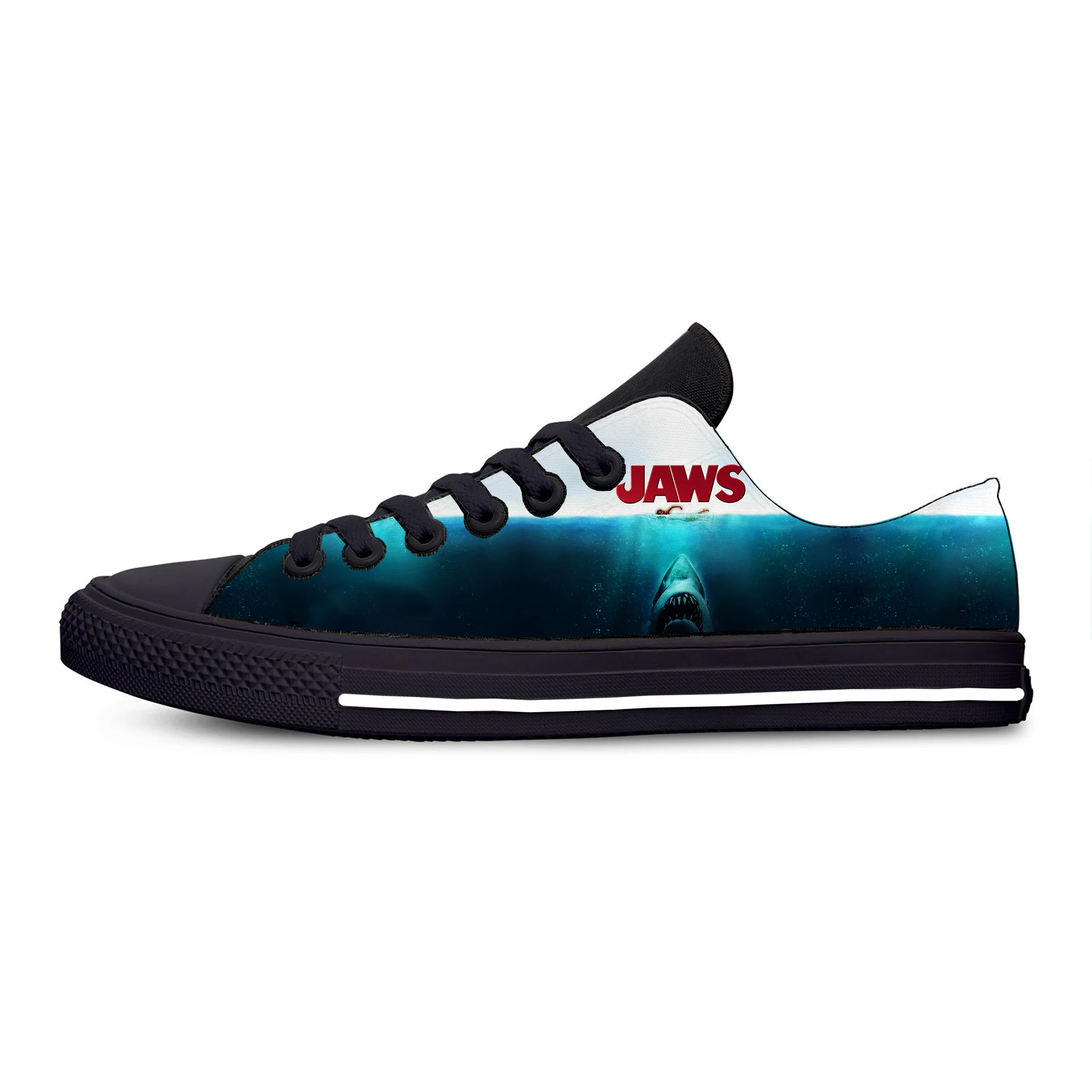 Фильм "Челюсти" Акула ужас страшные крутые модные забавные повседневные тканевые туфли с низким верхом легкие дышащие мужские женские кроссовки с 3D принтом