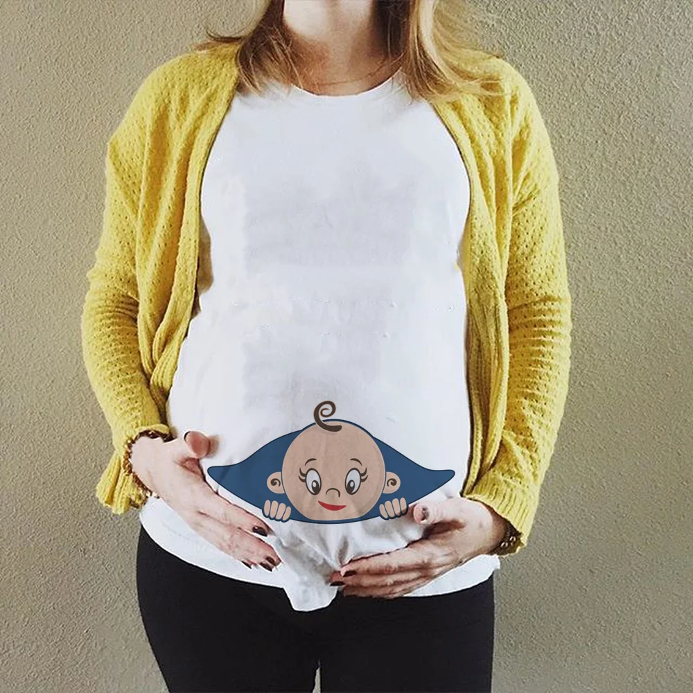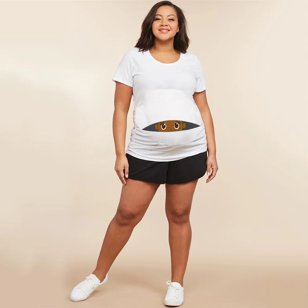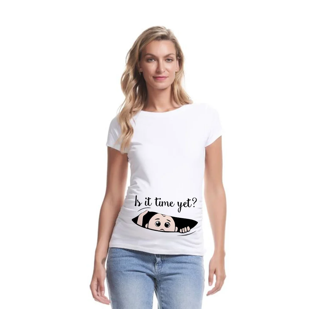 Летняя футболка для беременных с забавным мультяшным принтом, топы для беременных, одежда больших размеров с коротким рукавом для беременных