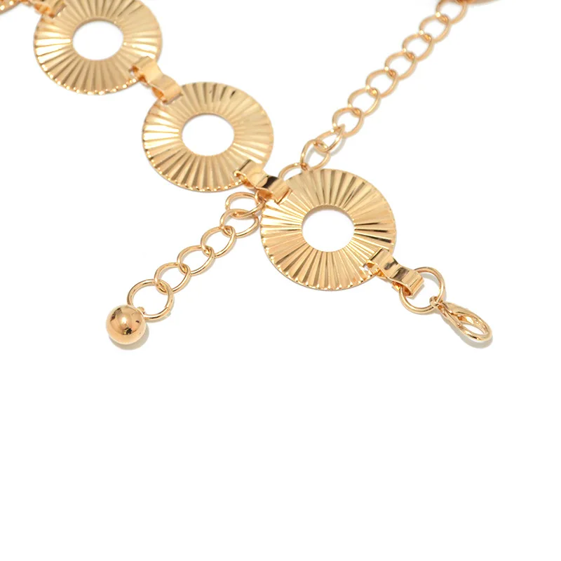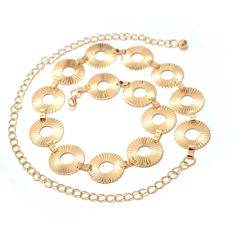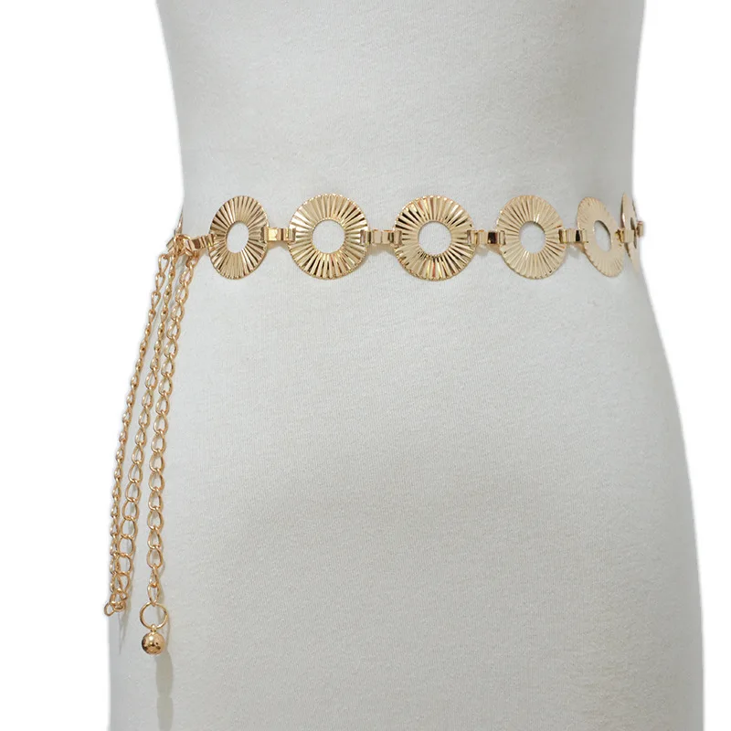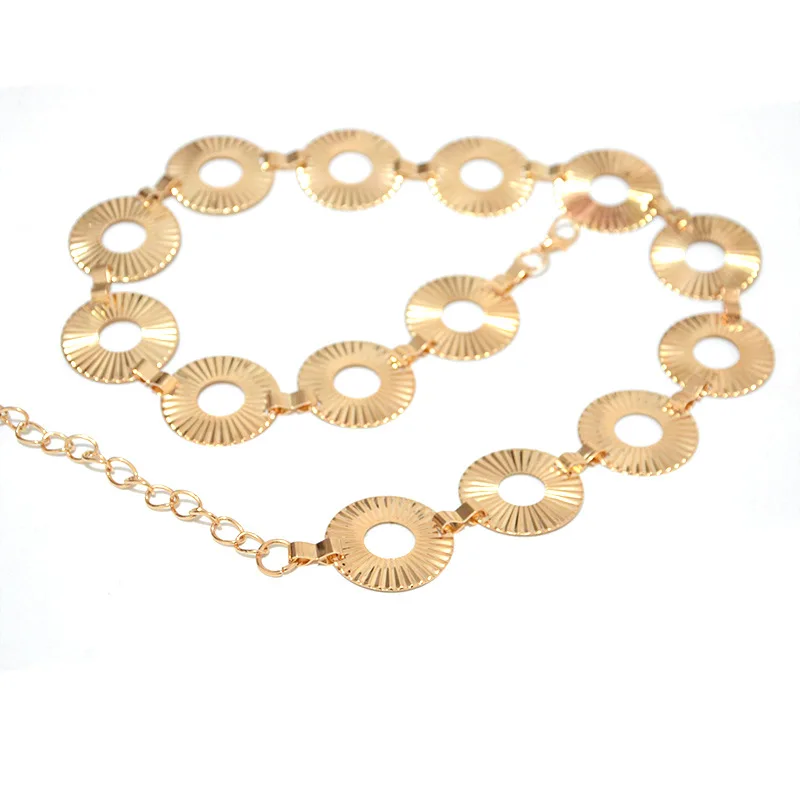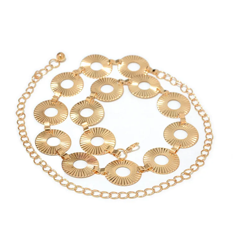 Золотая цепочка модные женские ремни, красивый элегантный женский модный пояс с металлическими дисками, украшение на талию, Bg-1491