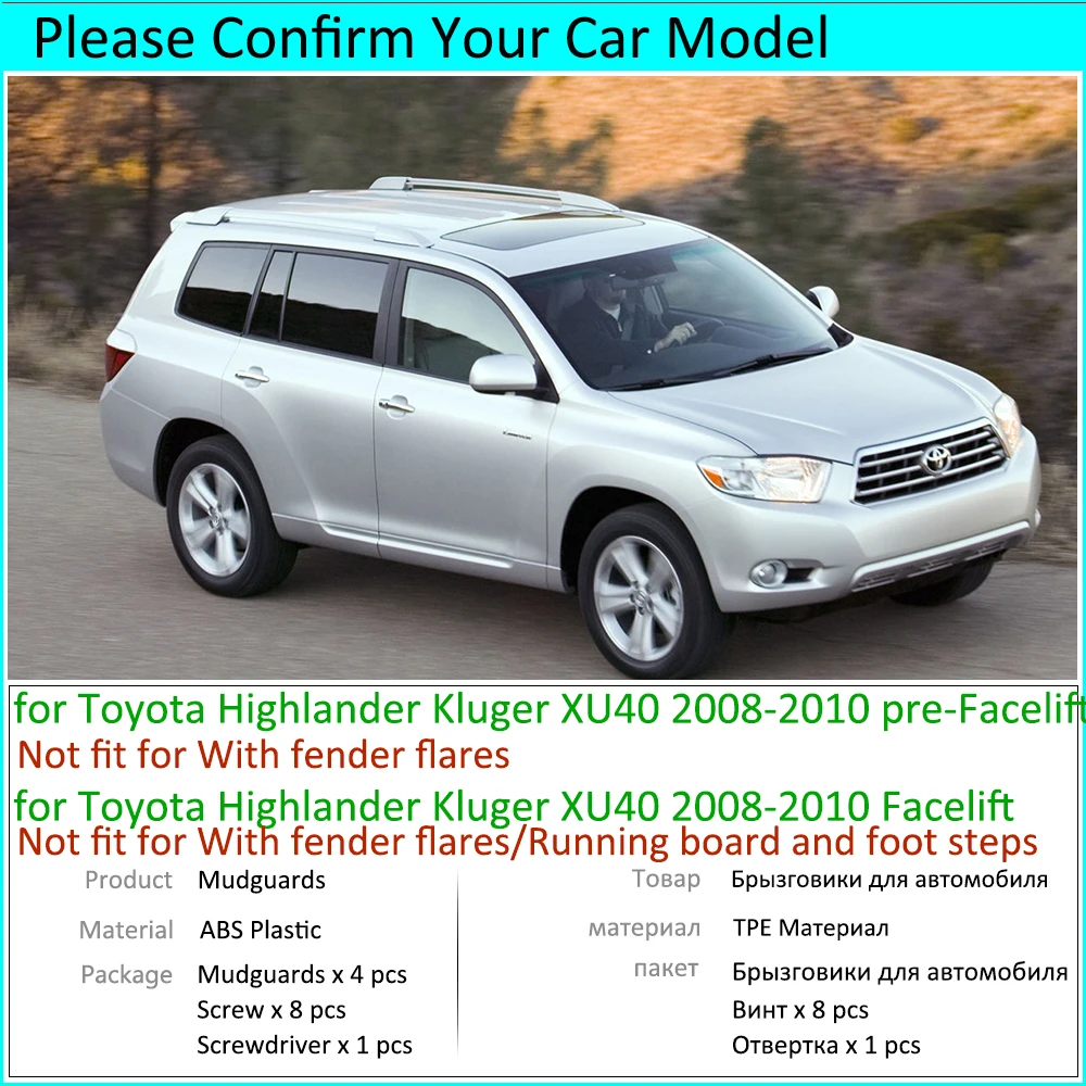Для Toyota Highlander Kluger XU40 2008-2013 Брызговики автомобильные аксессуары 2009 2010 2011