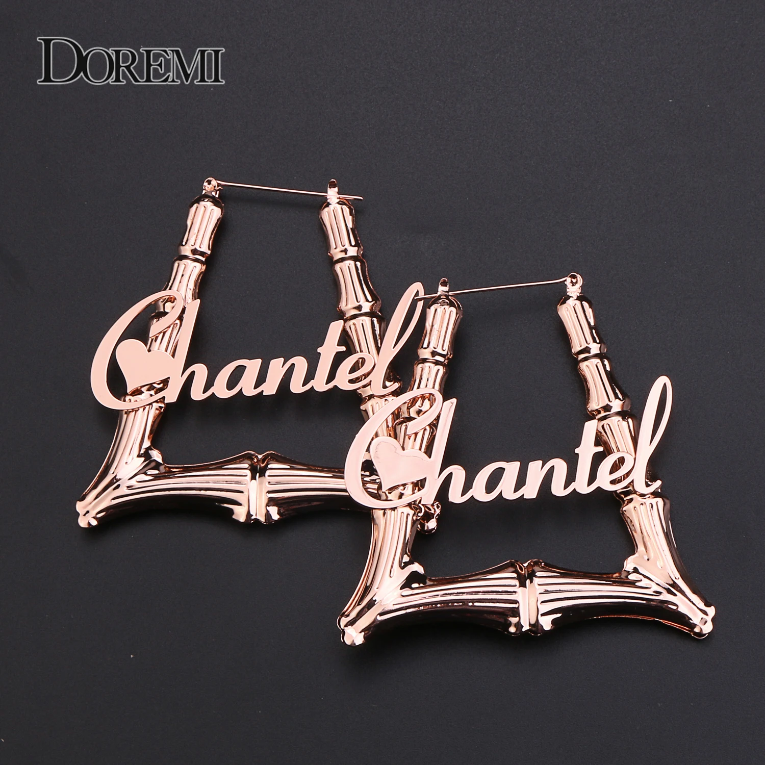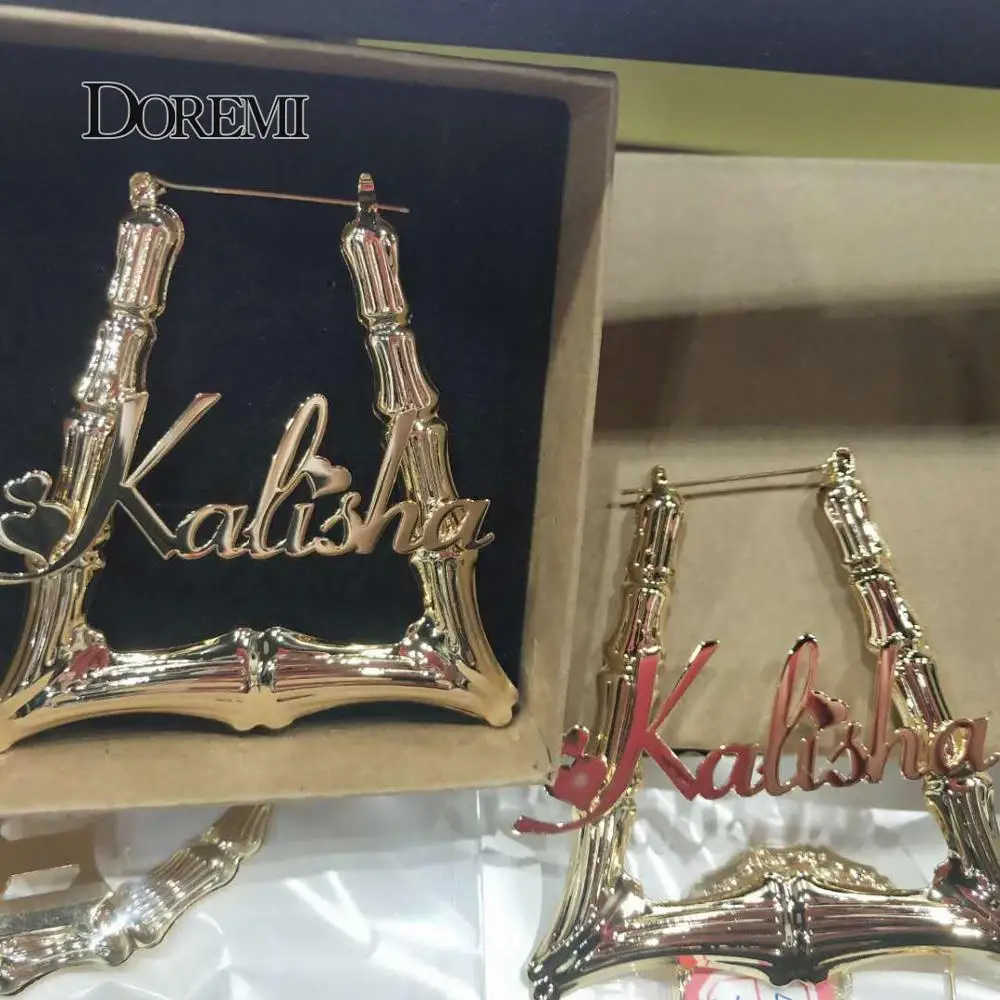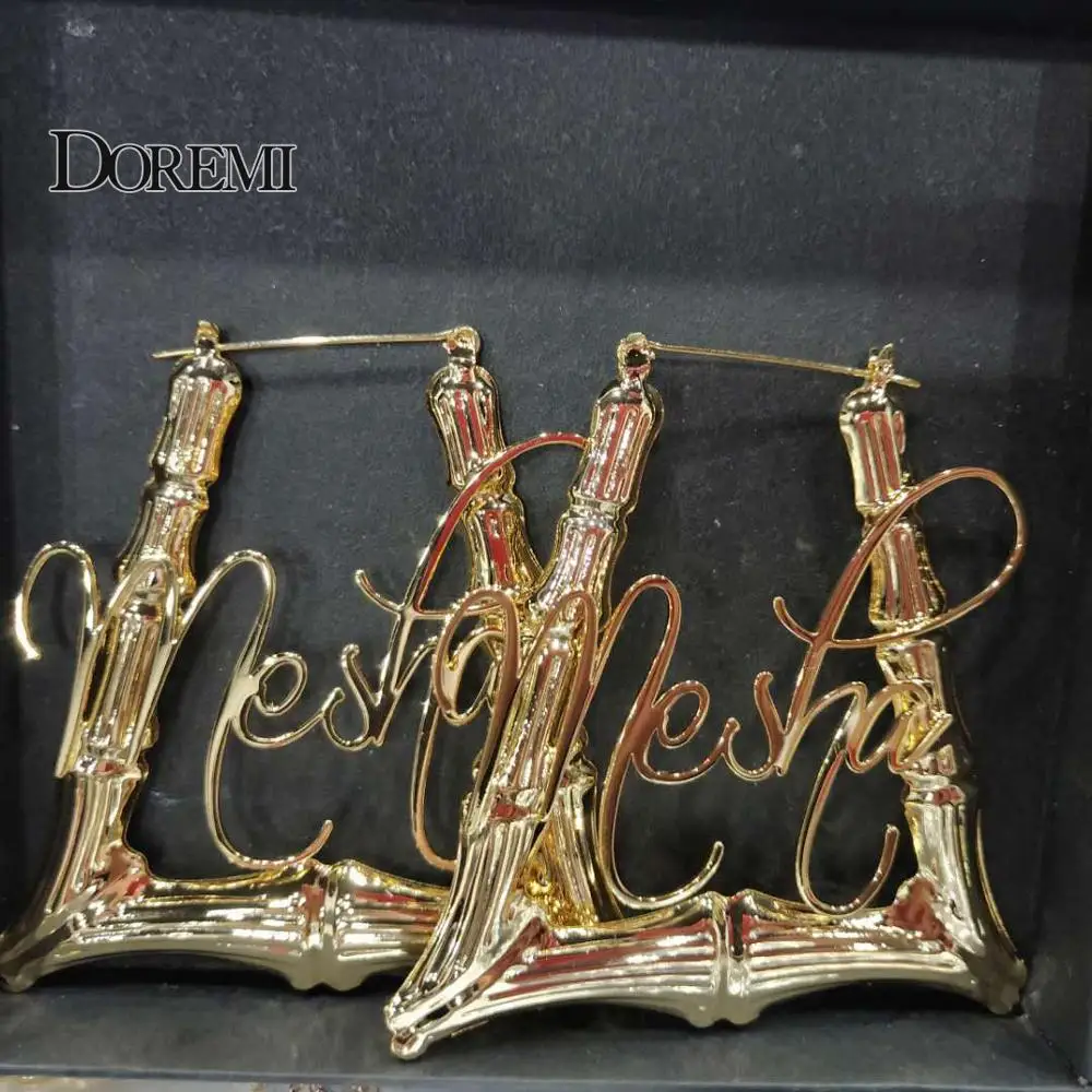 DOREMI 70 мм треугольные Бамбуковые серьги на заказ, кольца, Бамбуковые серьги с надписью, модные большие персонализированные именные серьги, женский подарок