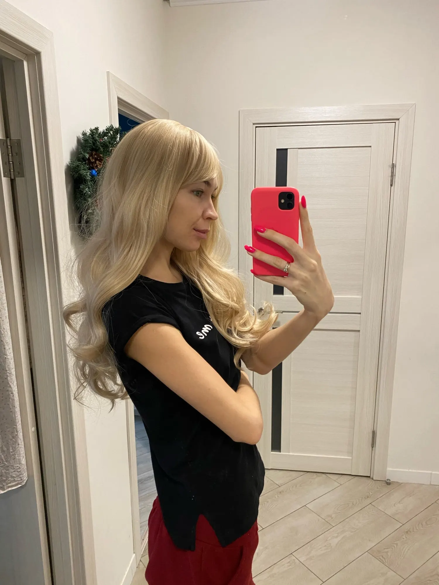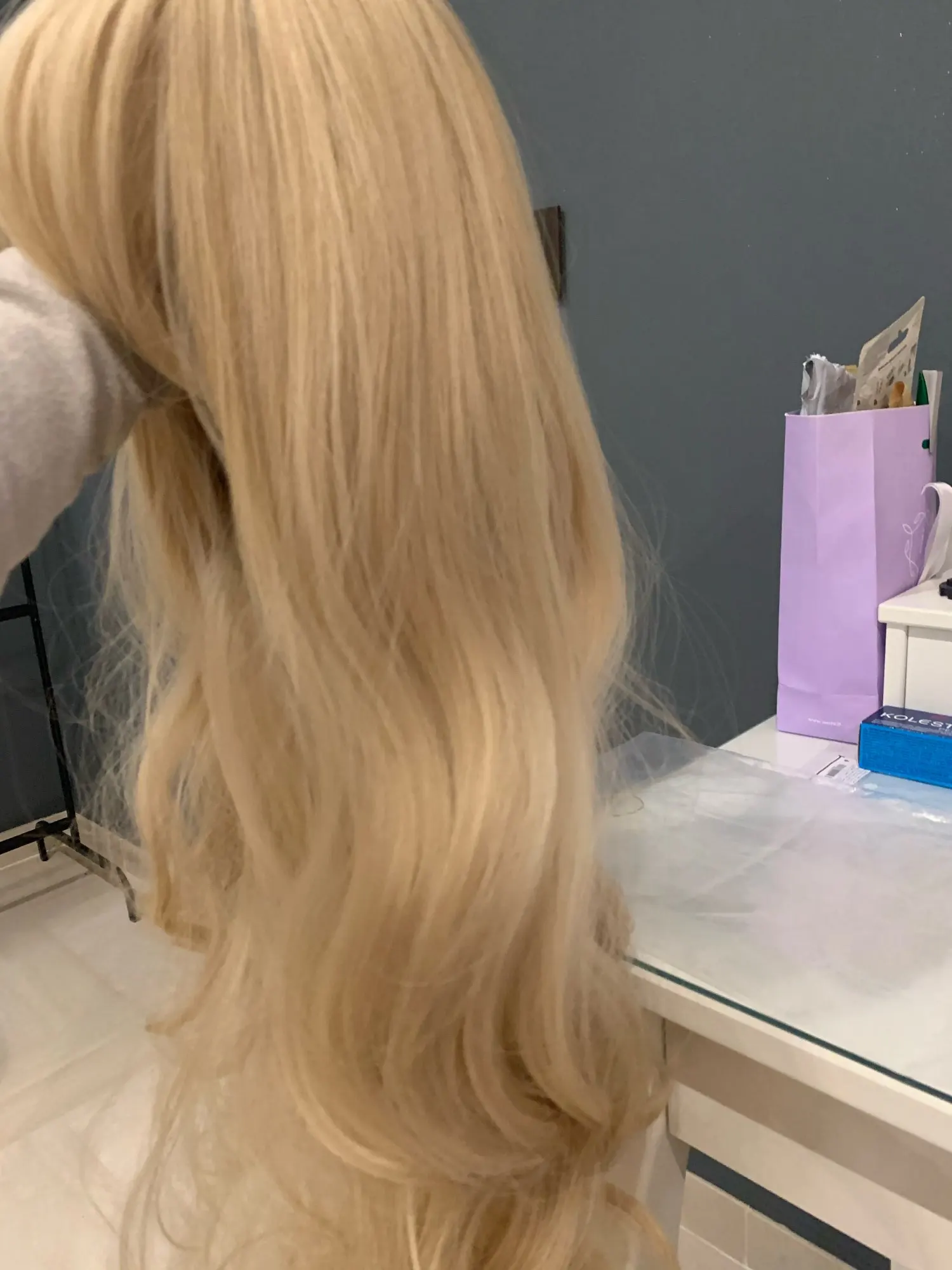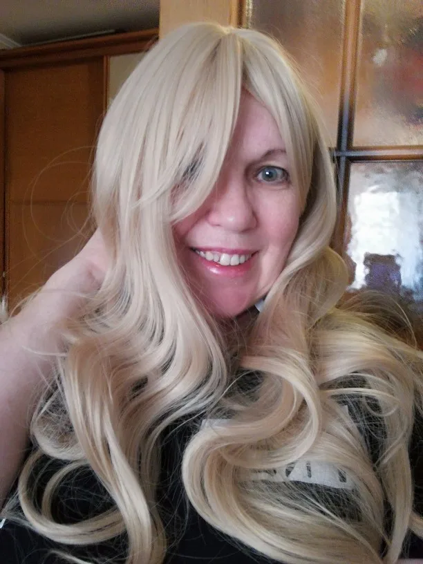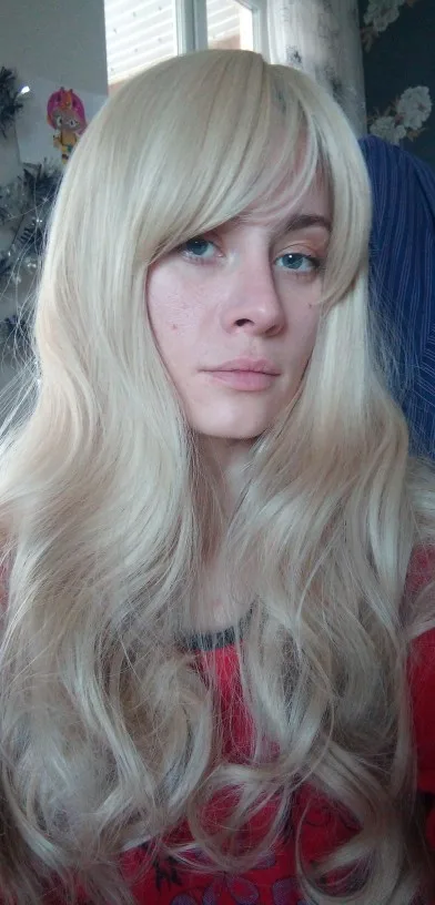 Люблю этот парик! Мой муж не любит светлые волосы, но иногда вы просто хотите иметь блонд. Этот парик очень мягкий и удобный! У меня есть еще один парик, который не такой длинный, потому что он очень тяжелый и некомфортный после долгого дня. Этот парик, однако, очень легкий на голове, и я не думаю, что он выглядит неестественно густым. Я обрезала челку, но можно носить по бокам или по прямой.