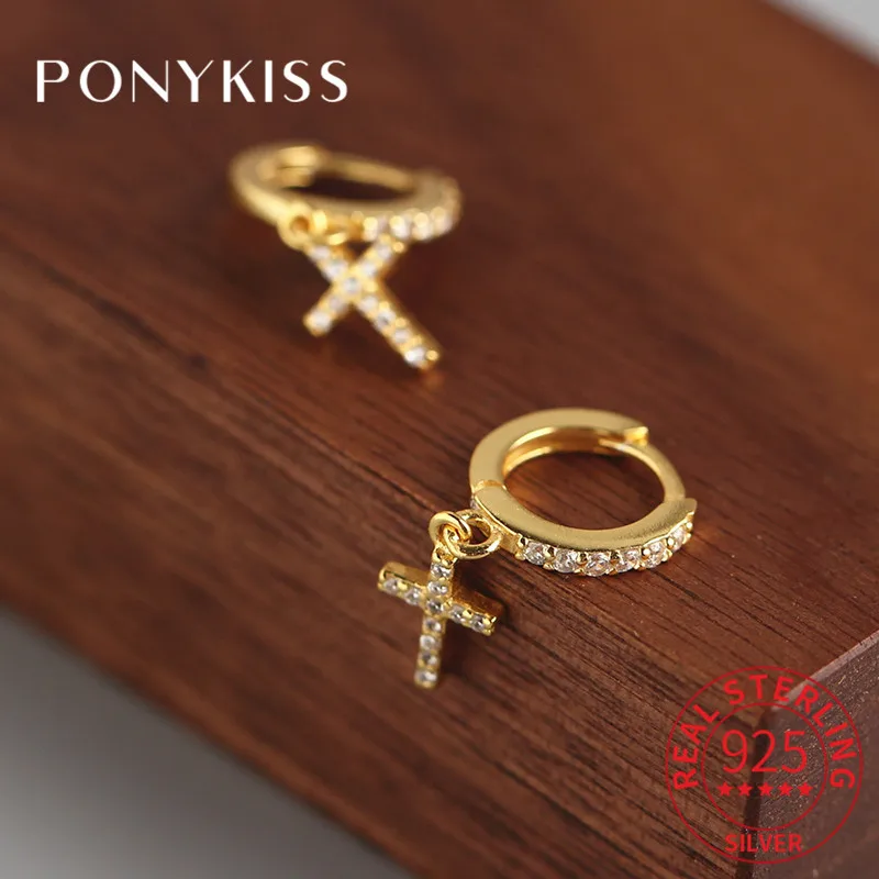 PONYKISS, Настоящее серебро 925 пробы, серьги-кольца с цирконом, унисекс, шикарные, модные, женские, вечерние, Изящные Ювелирные изделия, аксессуар