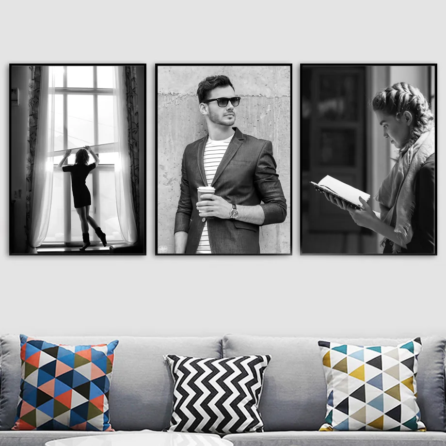 Винтажные постеры и принты в скандинавском стиле с изображением цветов, женщин, черного, белого цветов, настенная живопись на холсте, настенные картины для декора гостиной