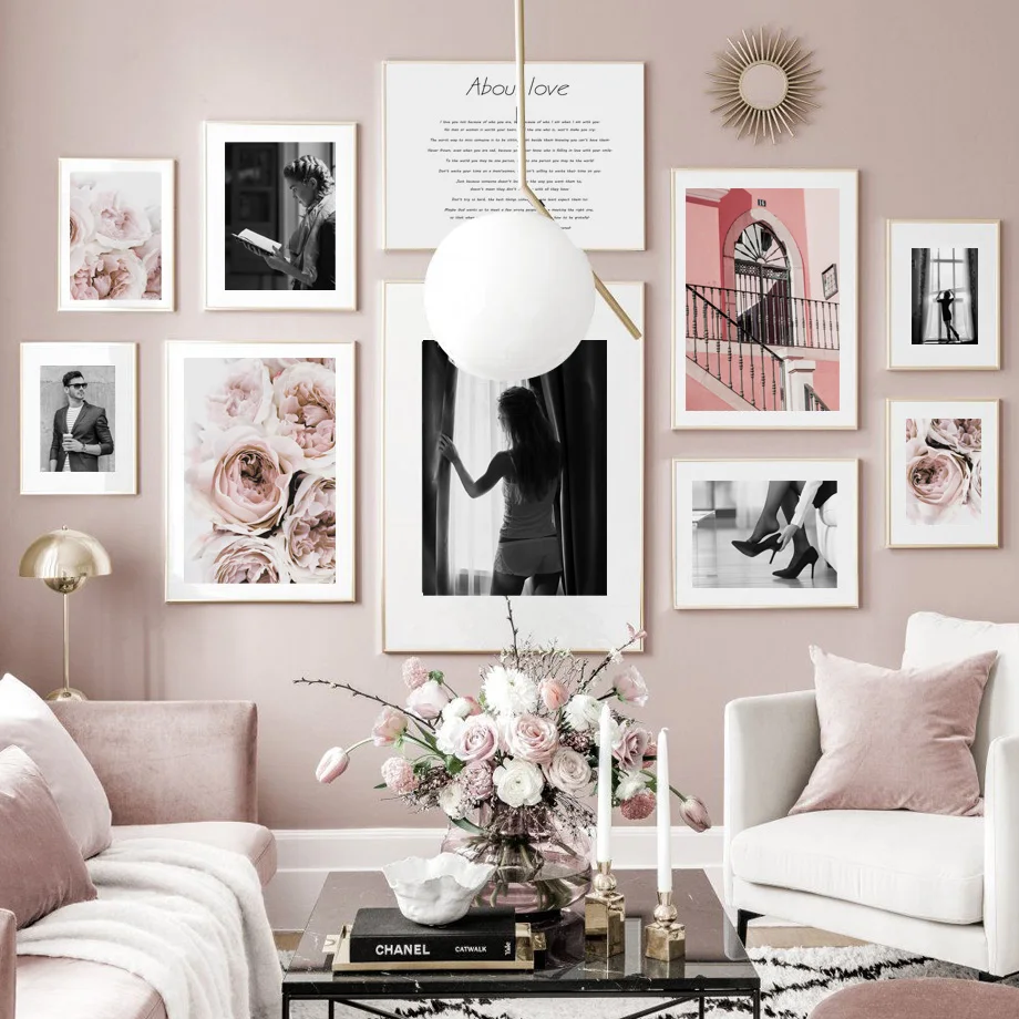 Розовый пион, Парижская башня, скандинавский пейзаж, постеры и прин...