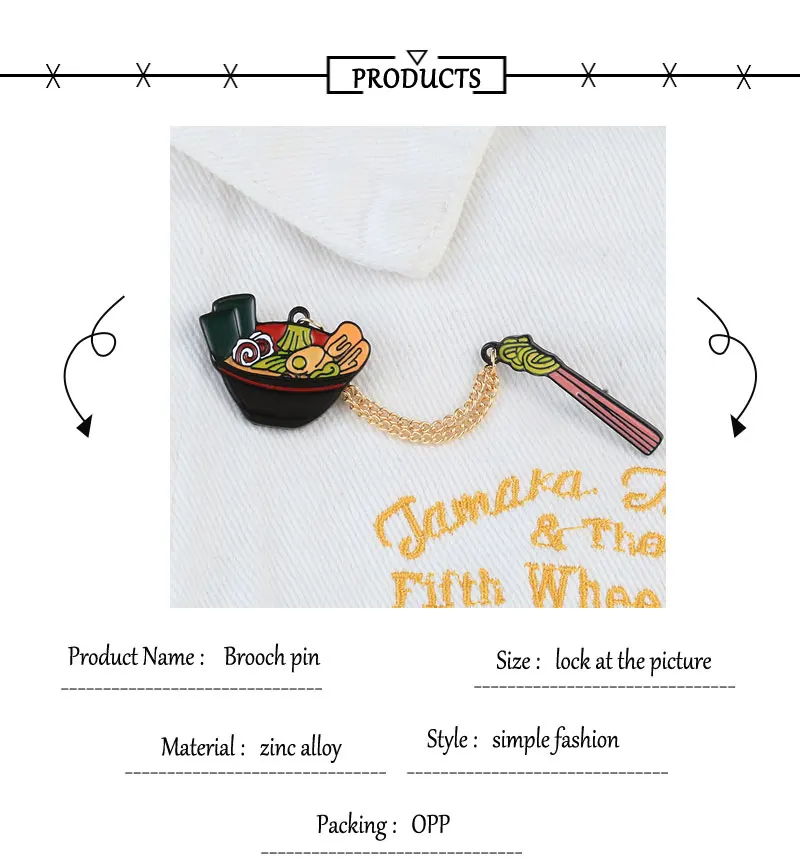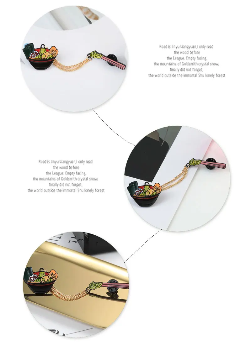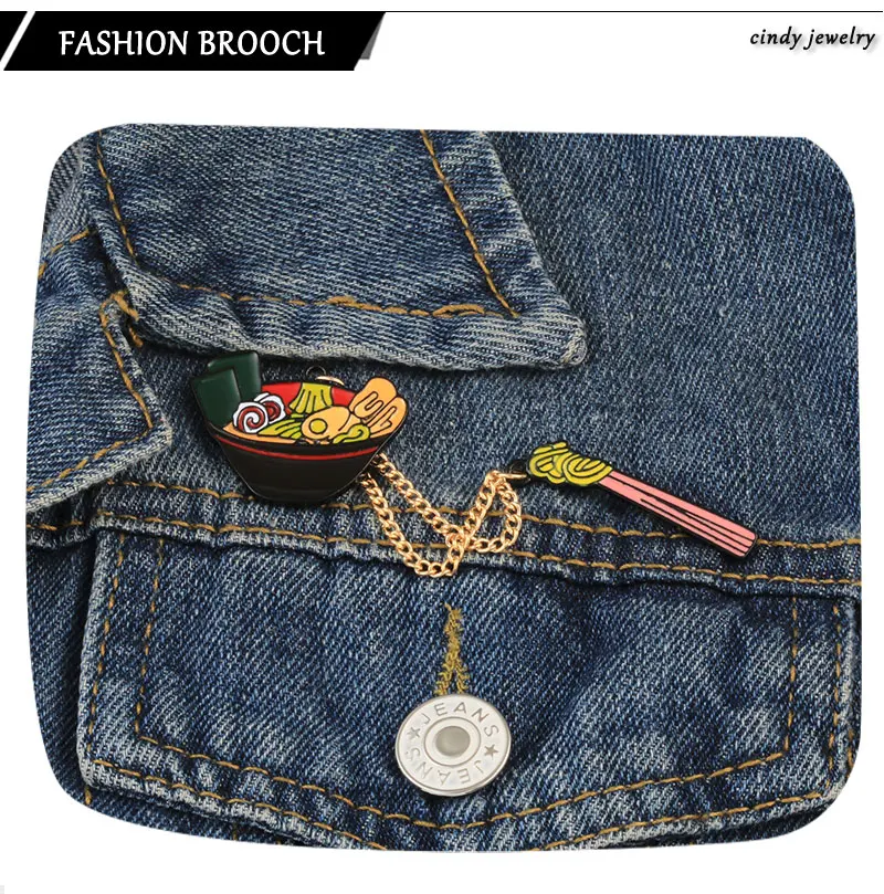 Мультяшные эмалированные булавки для рамен, милые продукты, японская лапша, палочки для еды, броши для женщин и мужчин, джинсовые рубашки, искусственная бижутерия, подарки