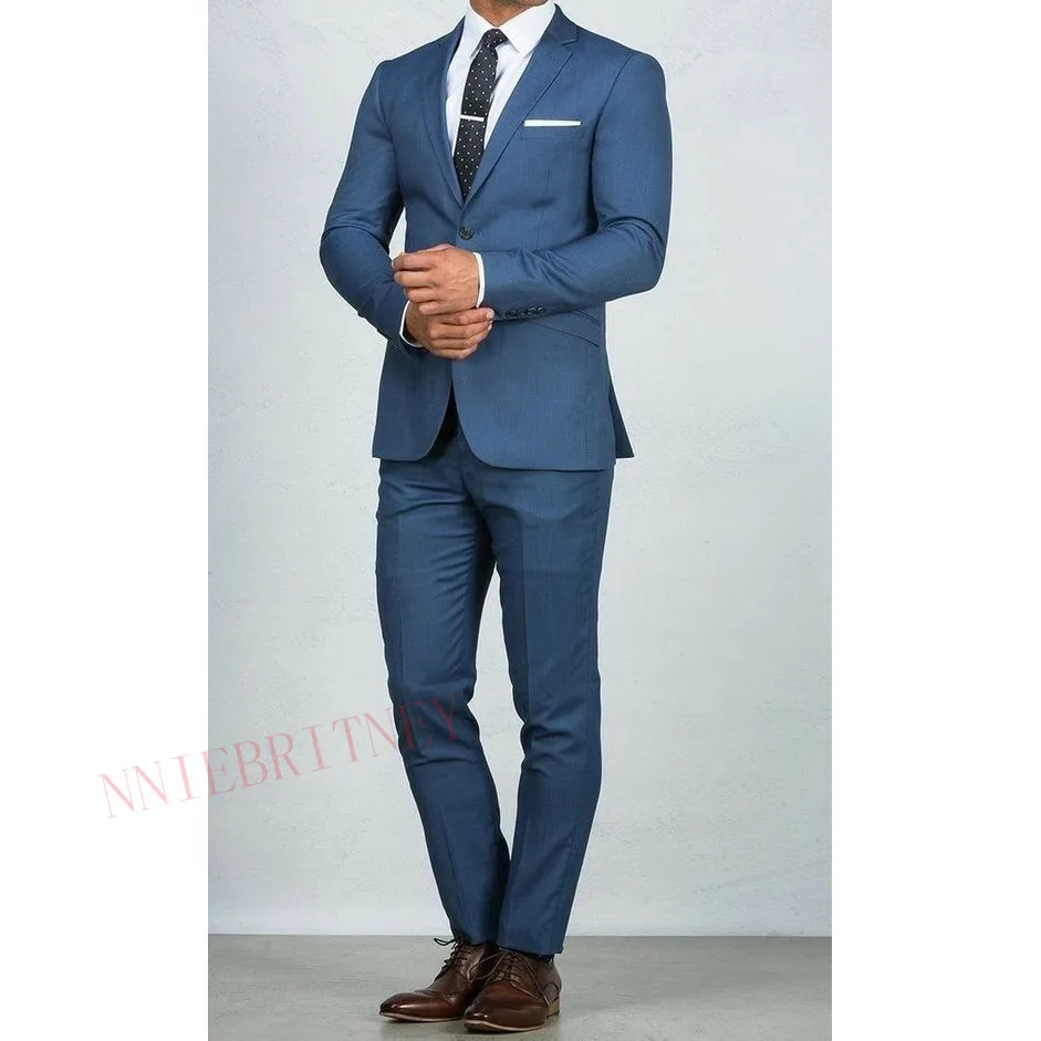 Классический темно-синий мужской костюм 2020, удобное свадебное платье для мужчин, смокинг для жениха, 2 предмета, облегающие мужские костюмы, пиджак и брюки