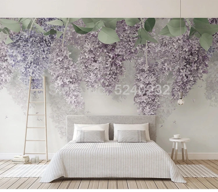 Пользовательские фото обои красивый фиолетовый цветок Vine 3D стерео Свадьба комната спальня гостиная фон настенная живопись