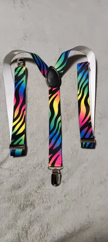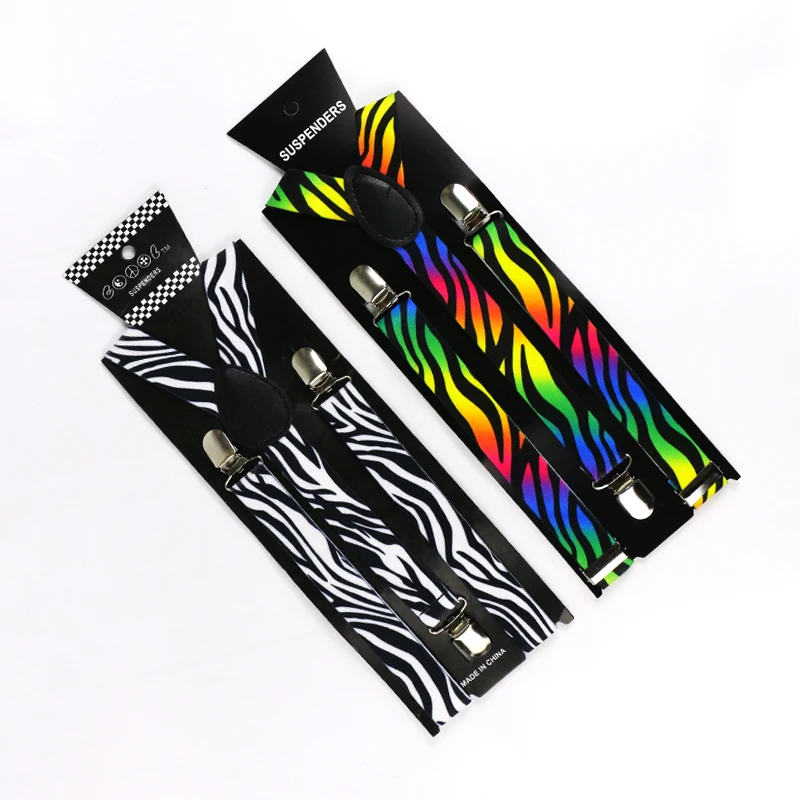 Подтяжки для мужчин и женщин Winfox, винтажные, черные, радужные, эластичные, ширина 2,5 см, Зебра, подтяжки с принтом