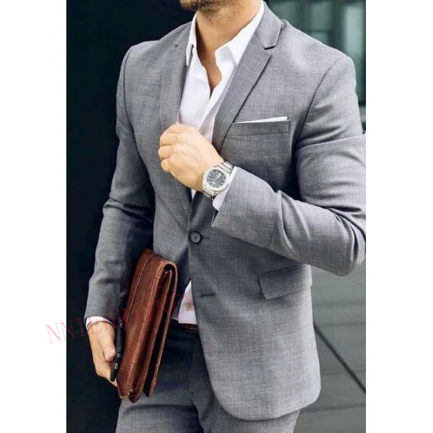 2020 светильник костюм серого цвета на Для мужчин 2 шт. Формальные Slim Fit Нарядные Костюмы для свадьбы для Для мужчин индивидуальный пошив для жениха смокинг плюс Бизнес блейзеры, куртки, штаны