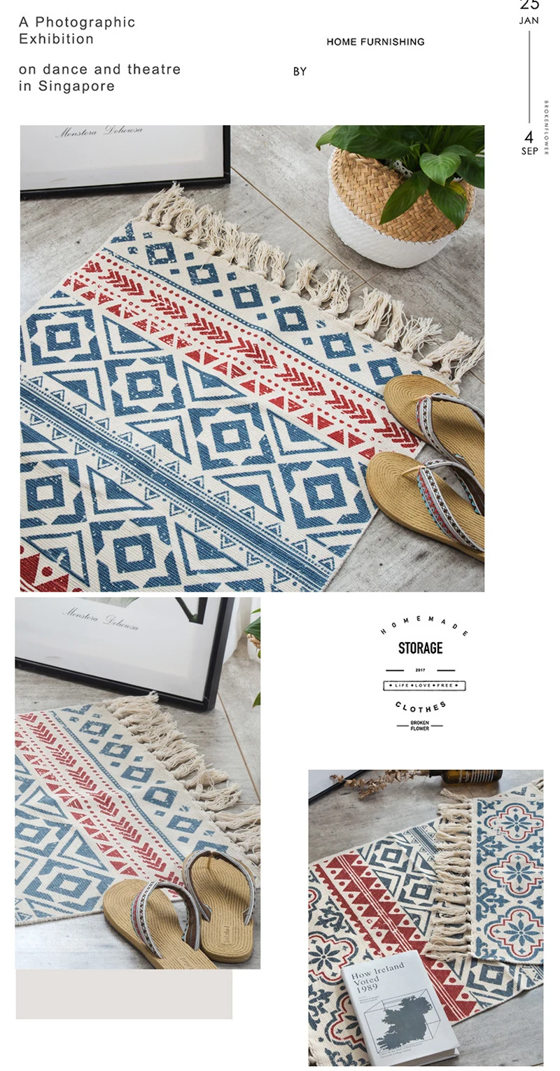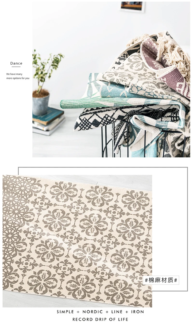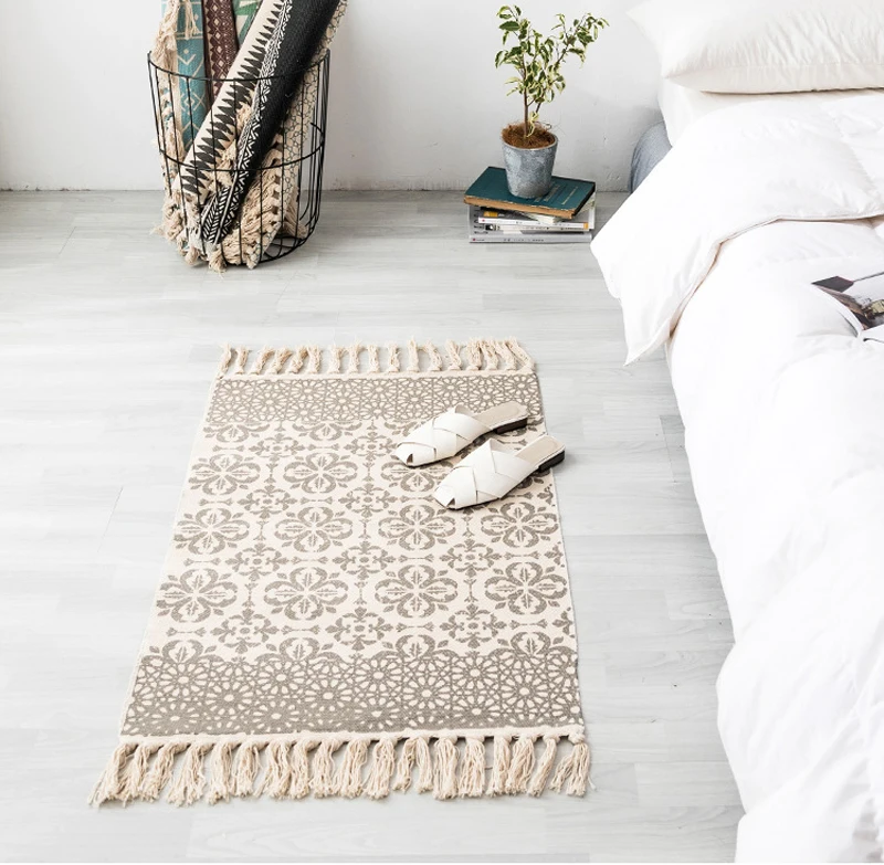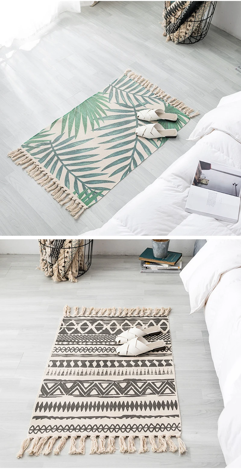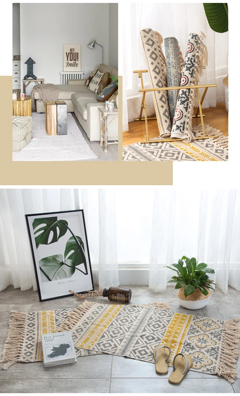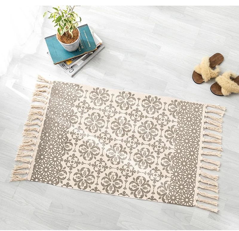 Ковер хлопковый льняной в этническом стиле, с кисточками, 60x90 см