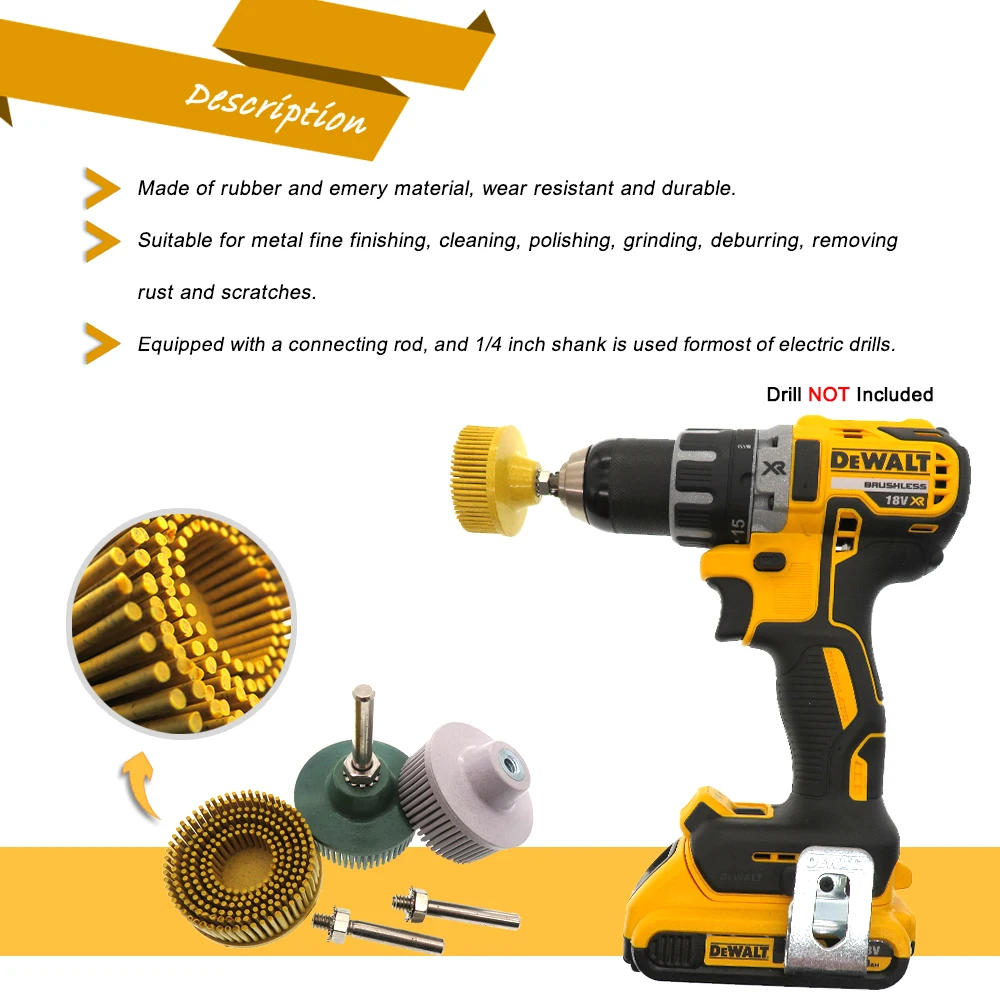 Диск со щетиной, 2 дюйма, наждачная резина, абразивная щетка Полировочный шлифовальный диск с насадкой для удаления заусенцев, ржавчины, царапин
