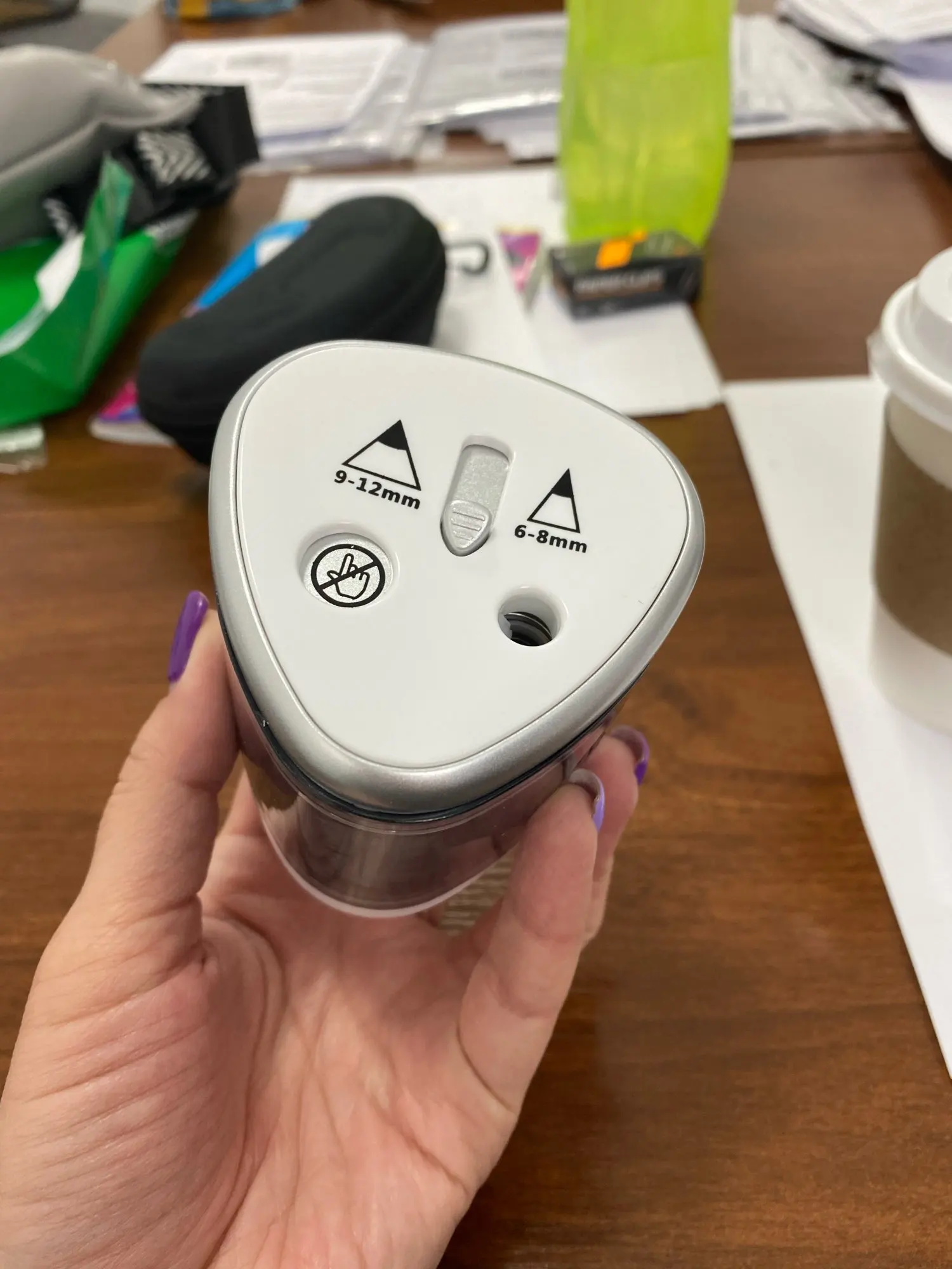 У меня никогда не было такого. Отлично работает. Он оставляет карандаши очень острыми, никогда ранее с ручными наконечниками не могли оставить их настолько острым Для обычных карандашей и для самых толстых. Я очень доволен покупкой. Работает с 4 небольшими батареями.