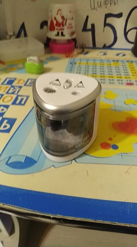 Хорошая точилка за свои деньги. Треугольные карандаши вставляются с трудом, но не критично. Отслеживалась до почты. Рекомендую.