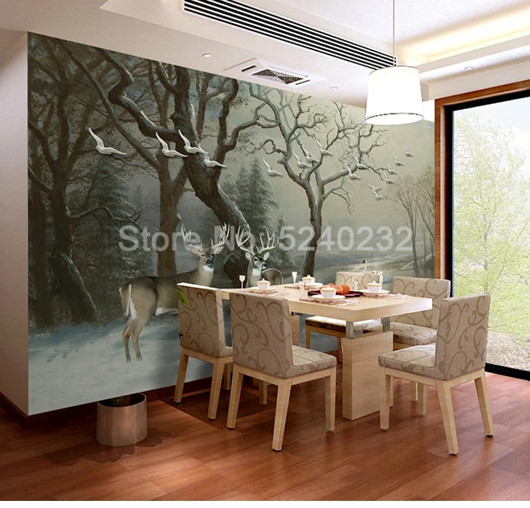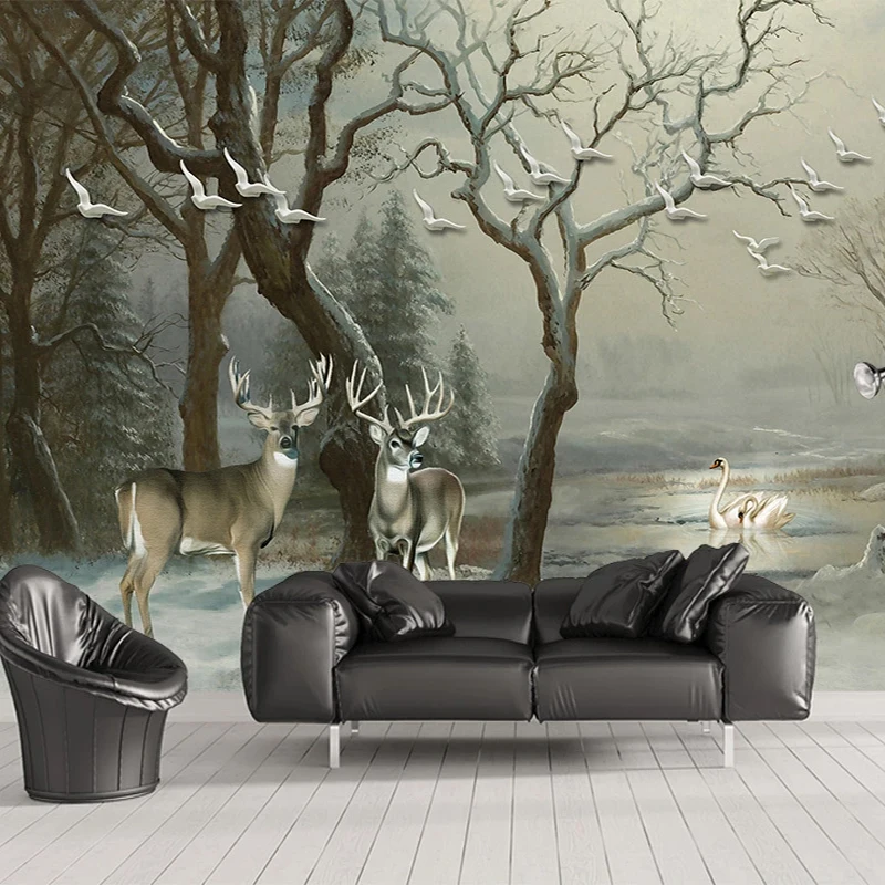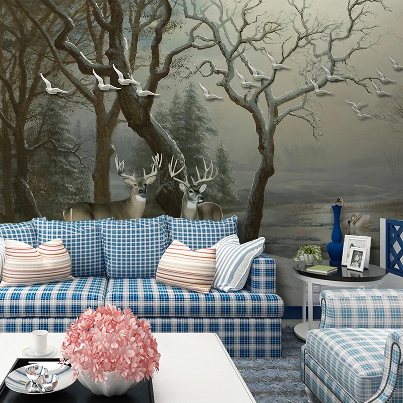 Обои на заказ, 3D рельефа, лесная птичка, лося, ретро, пасторальный пейзаж, картина маслом, для спальни, гостиной, настенное покрытие, настенная живопись