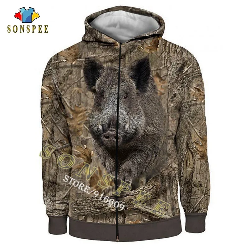 Спортивная одежда SONSPEE в стиле милитари для охоты дикого кабана с 3d принтом, модная мужская Повседневная Толстовка в стиле Харадзюку С Длинным Рукавом и капюшоном, толстовки на молнии