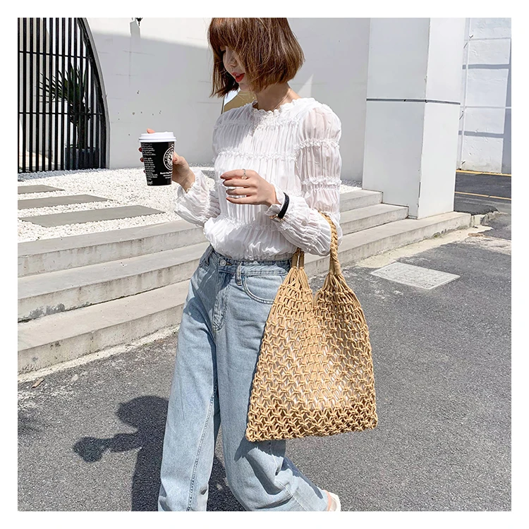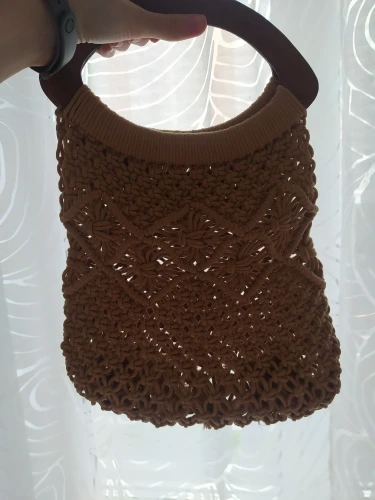 На картинке продавца у сумки есть тканевая подкладка внутри - по факту ее нет. Просто вязаная авоська с деревянными ручками. Также, на картинке сумка больше, чем есть. Когда в сумку кладёшь что-то узелки плетения внутри вылазят наружу ((( что вообще портит вид. И бонусом сумка пришла с пятном на ручке.