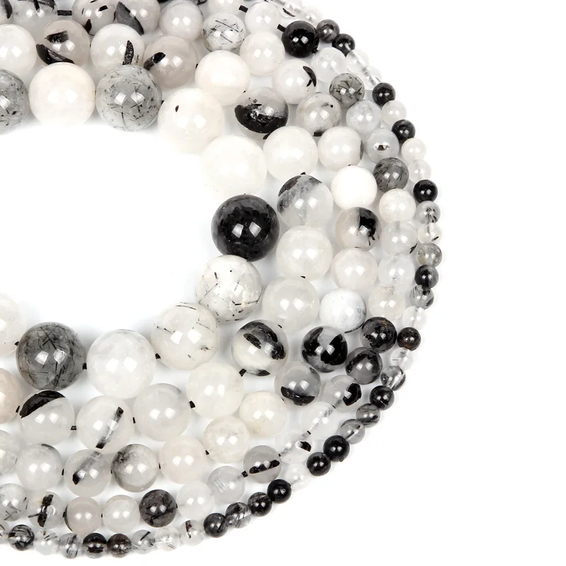 Бусины из натурального камня, черный кварц, круглые бусины россыпью для изготовления ювелирных изделий, для рукоделия, бусины сделай сам 15 дюймов, размер на нитке 4-12 мм