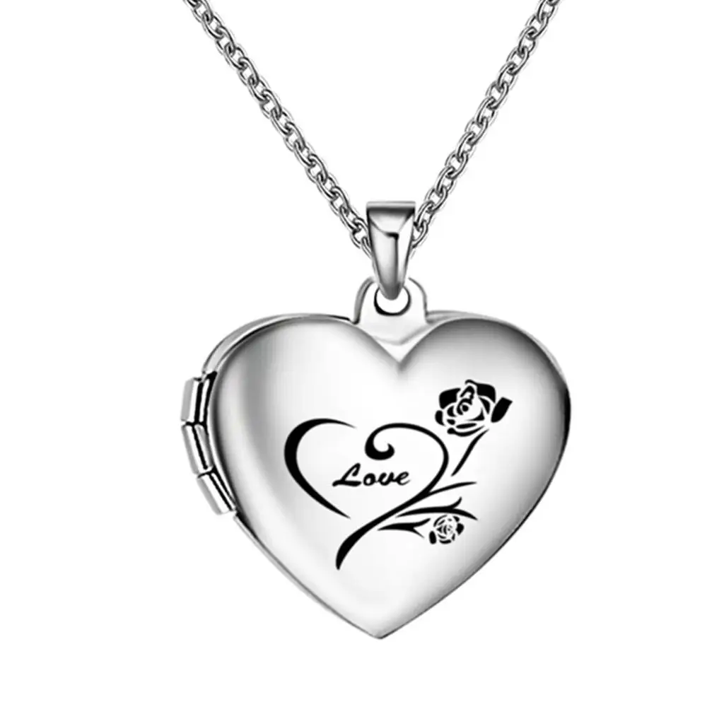 Изображение сердца медальон ожерелье Роза цветок любовь навсегда девушки кулон с фото ювелирные изделия из нержавеющей стали