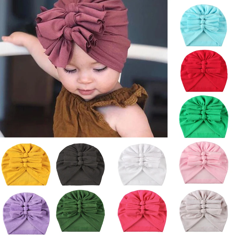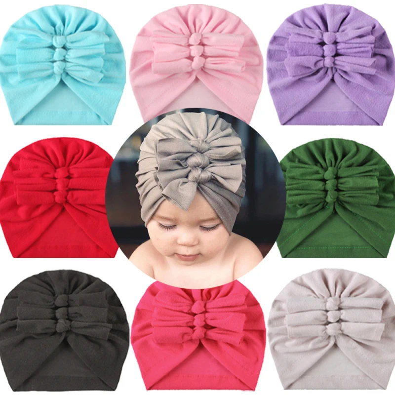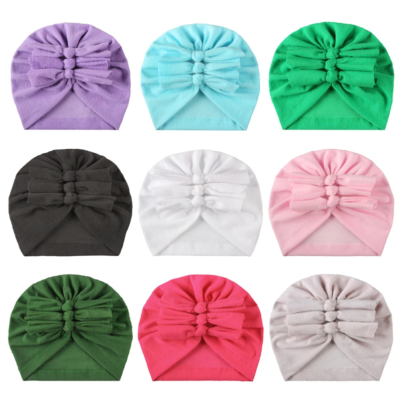 11 цветов, детская шапка для мальчиков и девочек, хлопковый пуловер с узлом для новорожденных, шапка, мягкая трикотажная ткань, плиссированная шляпа с бантом, аксессуары для волос