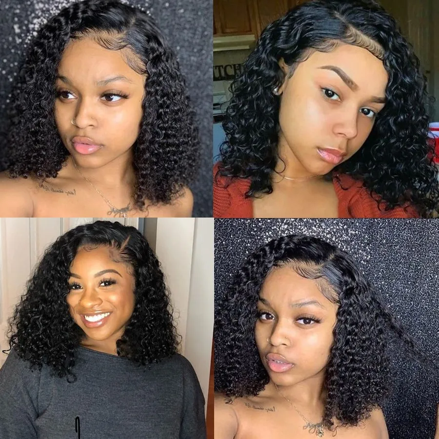 Парик Pixie Cut с предварительно отобранным Бобом, вьющиеся человеческие волосы, парик с коротким кружевом спереди, человеческие волосы, парики для черных женщин, вьющиеся волосы спереди