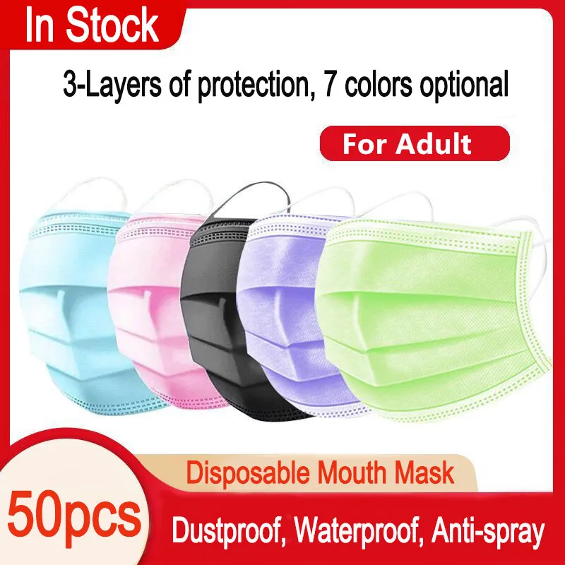 50 шт. разноцветные ежедневные одноразовые маски 3 слоя s нетканые ...