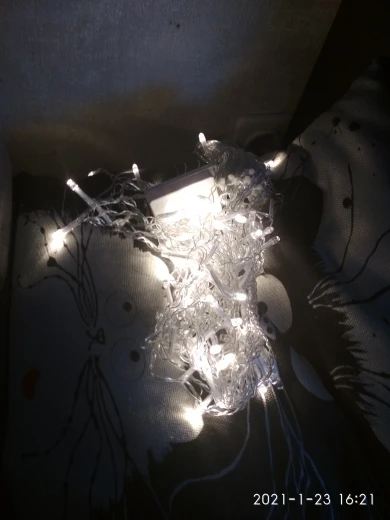 Заказ отправлен через 2 дня, шел 27 дней, пришел в аккурат к Новому году, успел, продавцу респект за скорость. Был упакован в конверт с пупыркой. Дошел неповрежденным, лампочки мигают, все работает. Заказываю такие гирлянды второй раз. В прошлом году - с теплым светом, у другого продавца. Провисела месяц на застекленном сибирском балконе, радовала глаз. Короче, на улице весить можно и нужно, морозы выдерживает, работает нормально. В этот раз добавлю две с холодным светом: чем больше, тем лучше. Длины гирлянды с висюльками хватает в аккурат на всю застекленную часть балкона, но хвостик с вилкой коротковат, нужен удлинитель для вилки. Синхронизировать гирлянды. думаю, можно, там на соединительной коробке есть кнопка переключения режимов, надо попереключать и подобрать одинаковый режим на всех.
